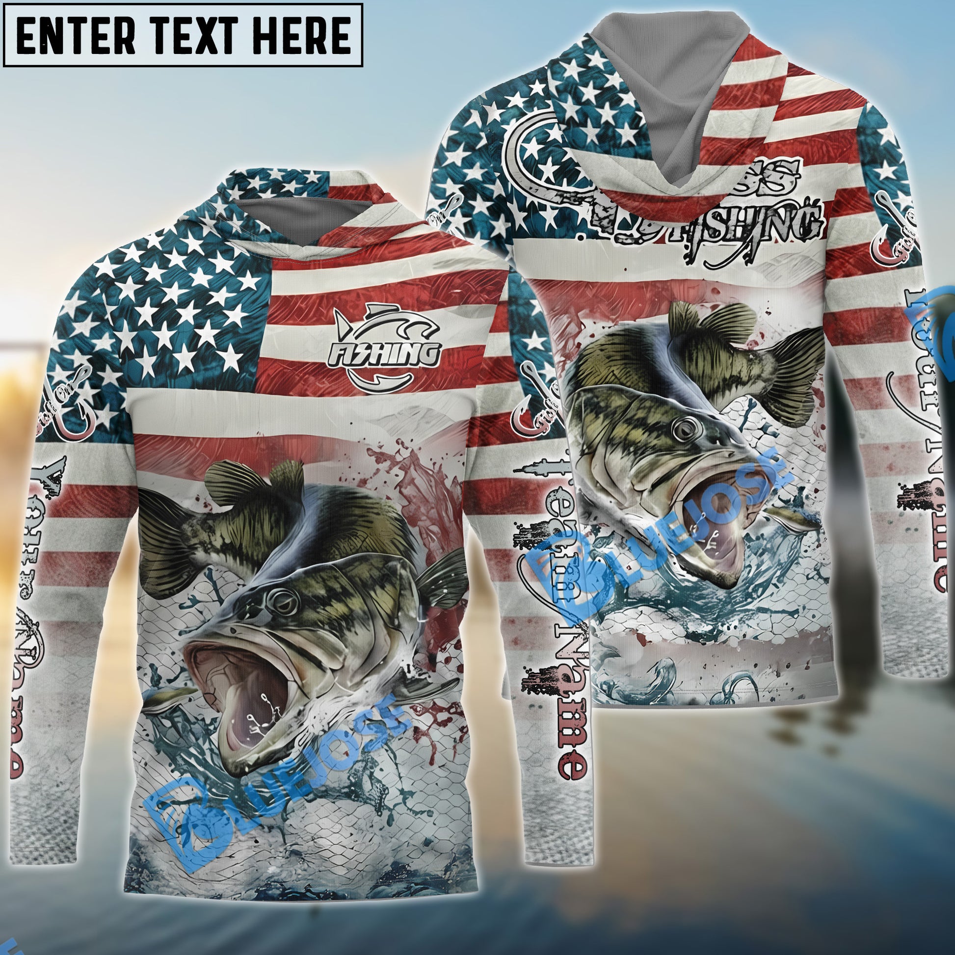 Bluejose Bass Fishing American Flag Splash Design Custom Name & Team Name 3D Shirts