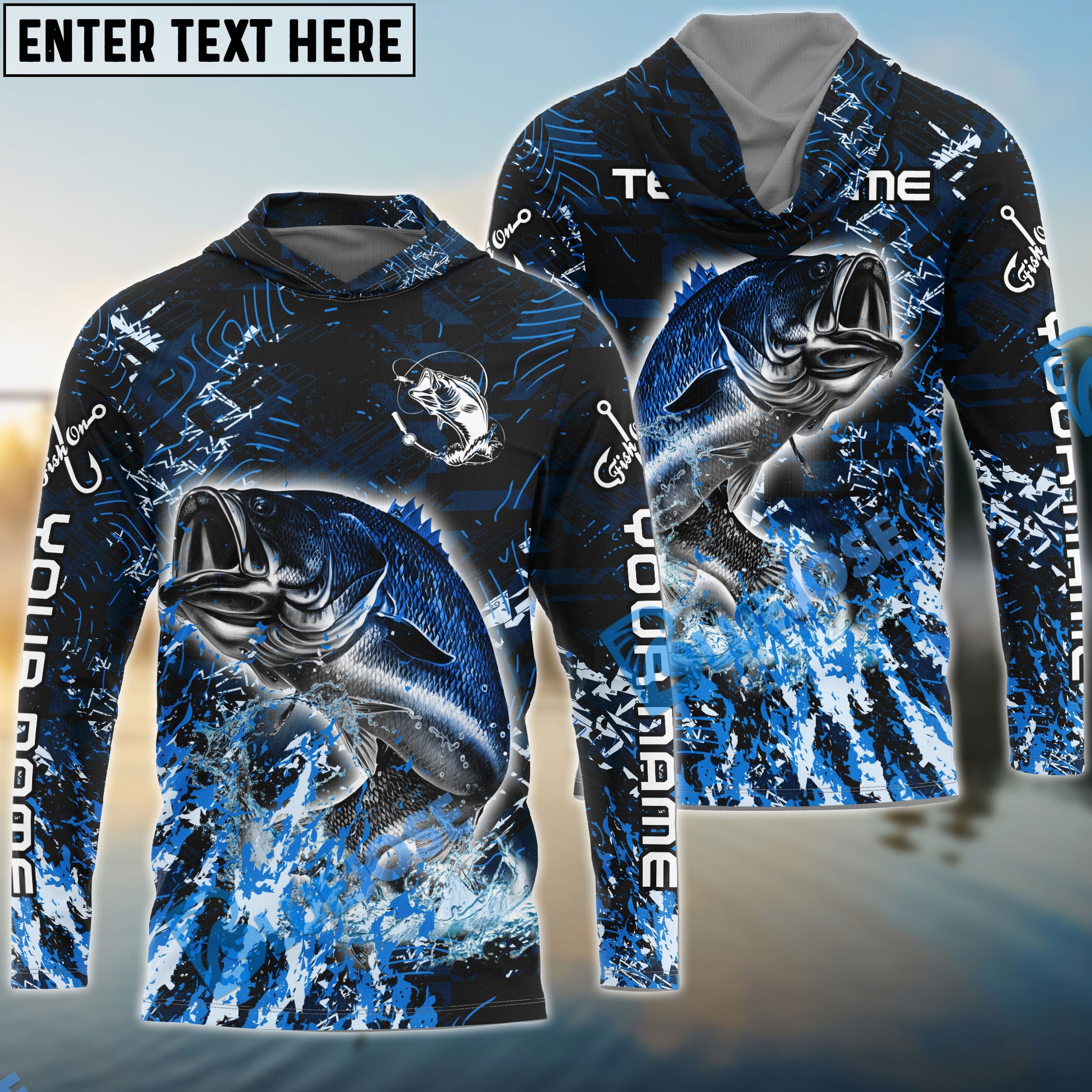 Bluejose Bass Fishing Dark Grunge Blue Custom Name & Team Name 3D Shirts