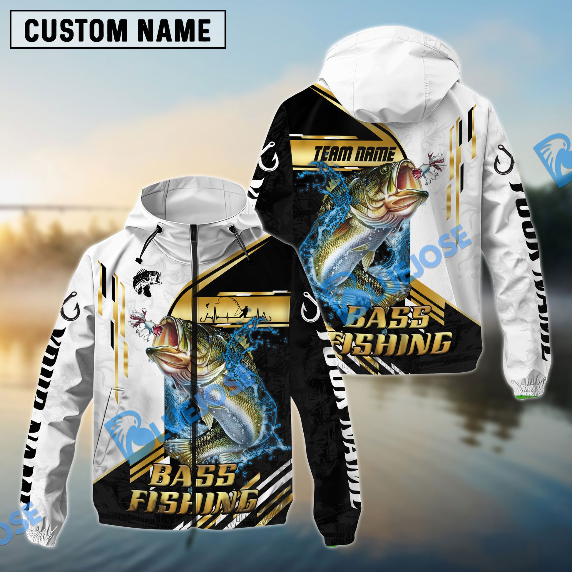 Bluejose Bass Fishing Hook Graphic & Jumping Fish Art Custom Name & Team Name 3D Shirts