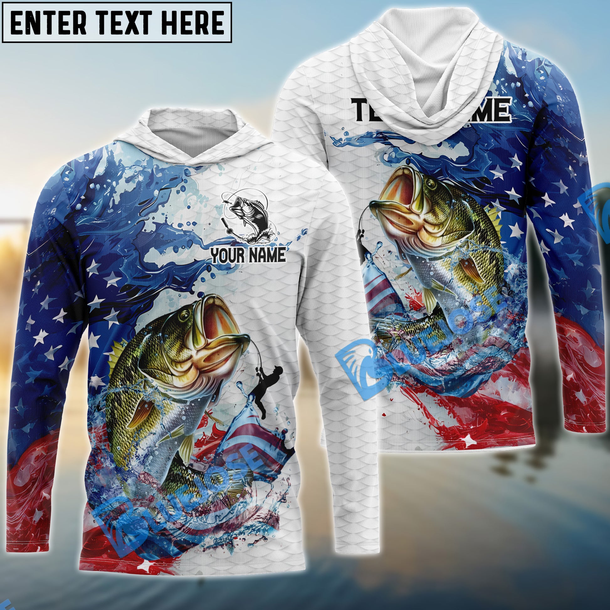 Bluejose Bass Fishing Patriotic American Flag Wave White Skin Custom Name & Team Name 3D Shirts