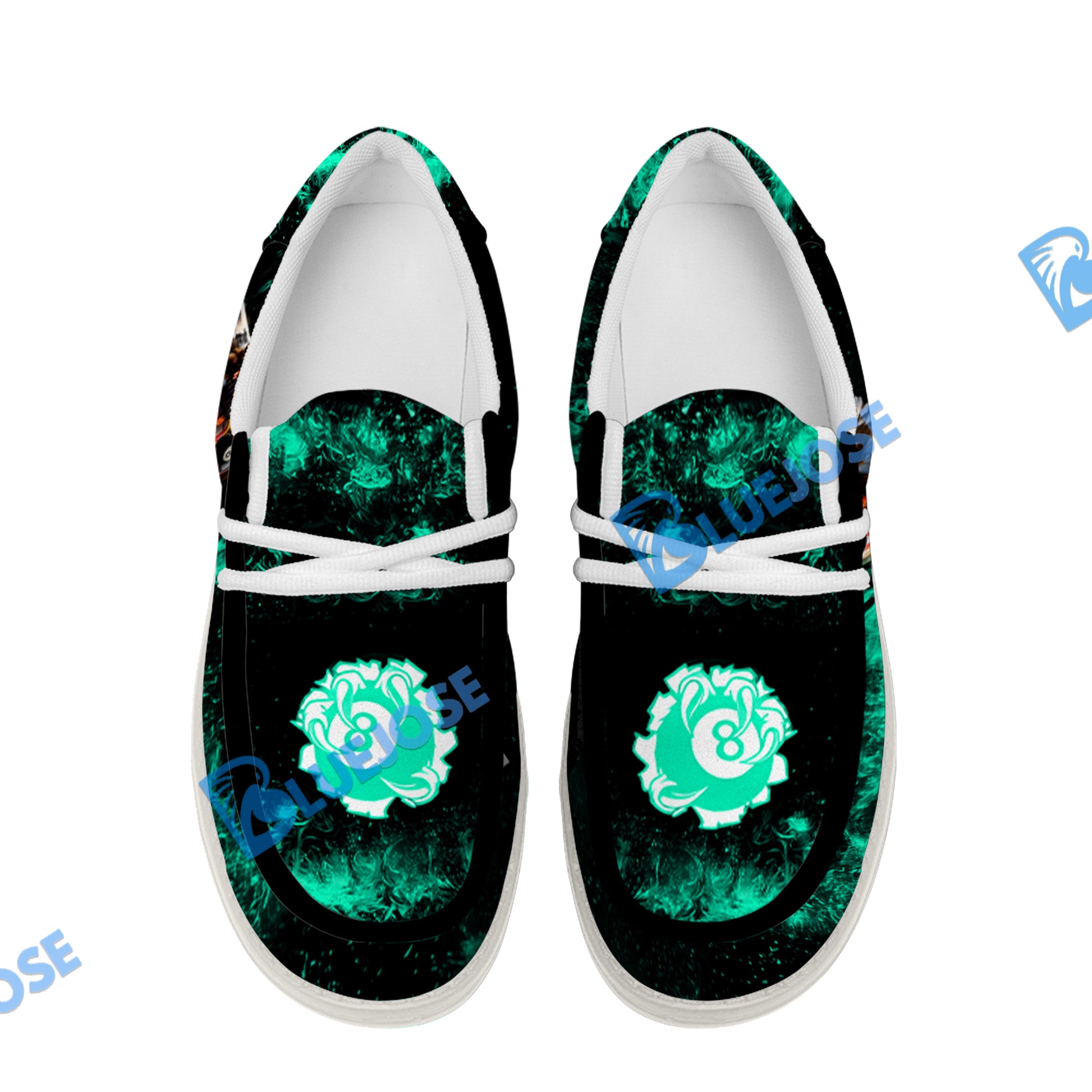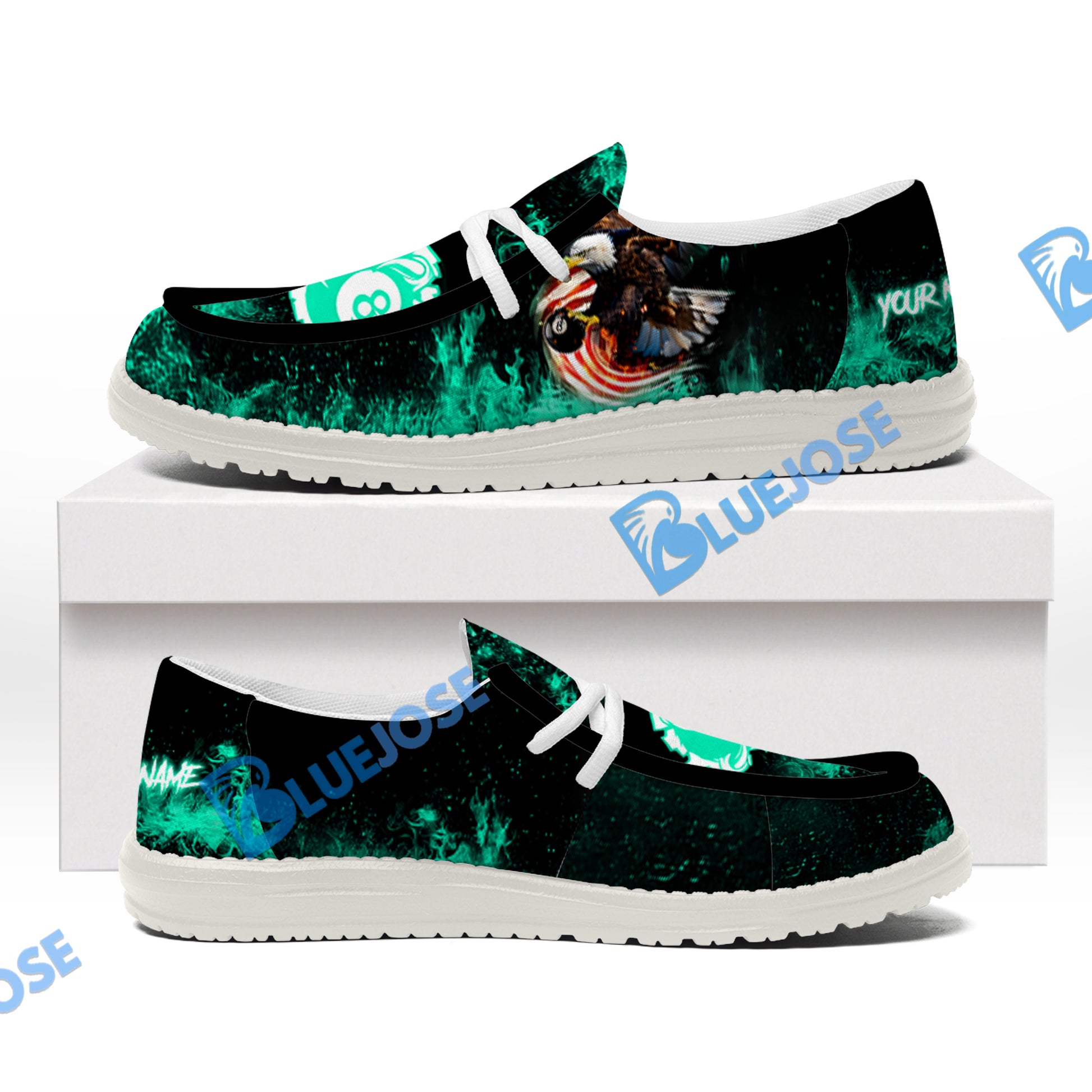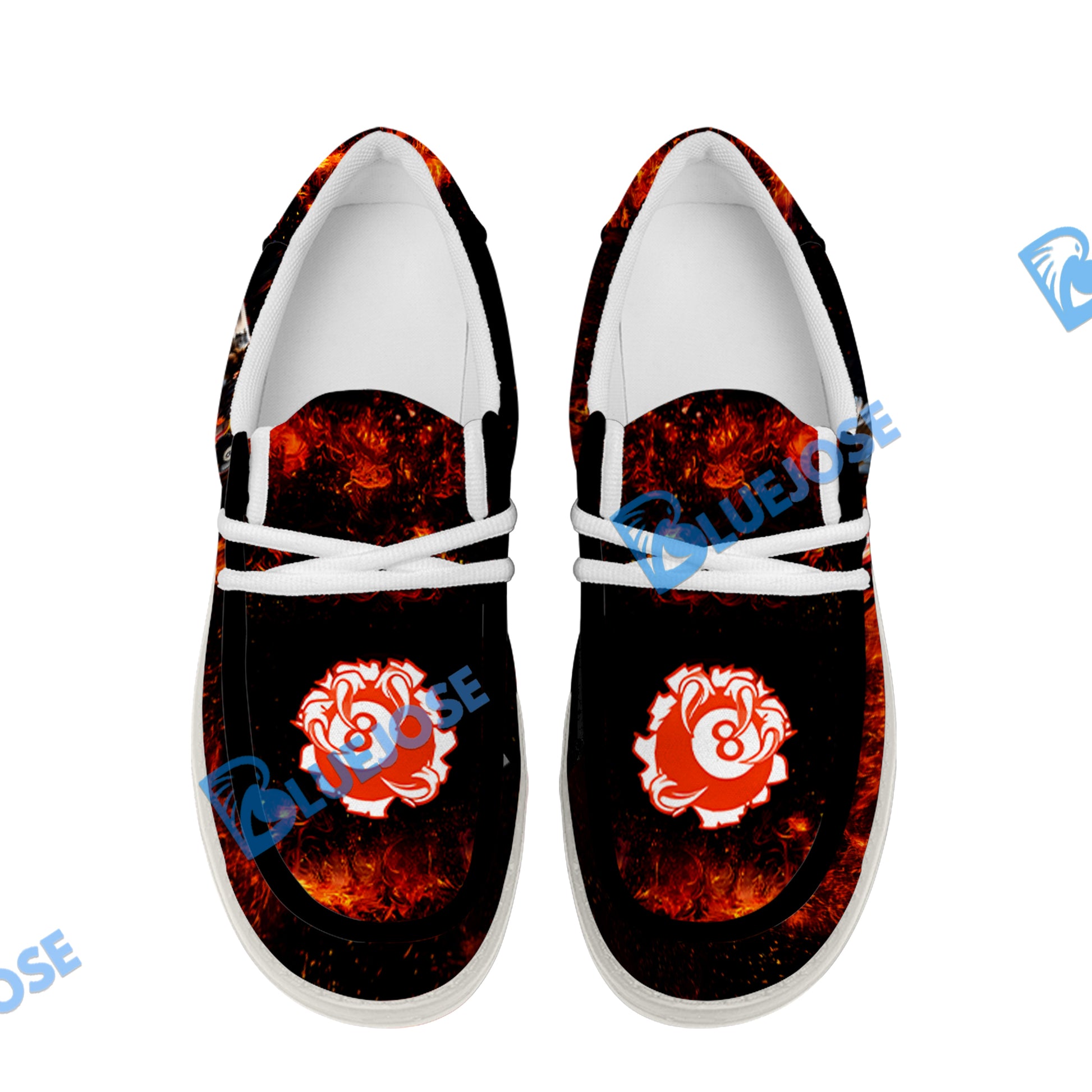 BlueJose Billiard 8 Ball Eagle Fire Flame White Canvas Loafer Shoes ( 4 Colors )