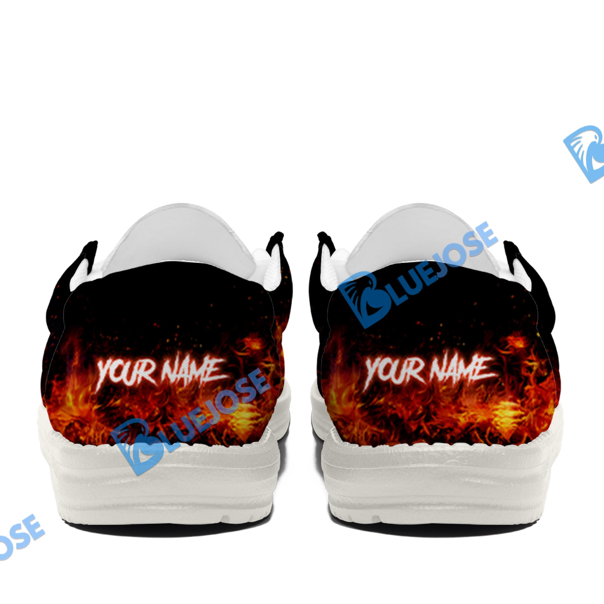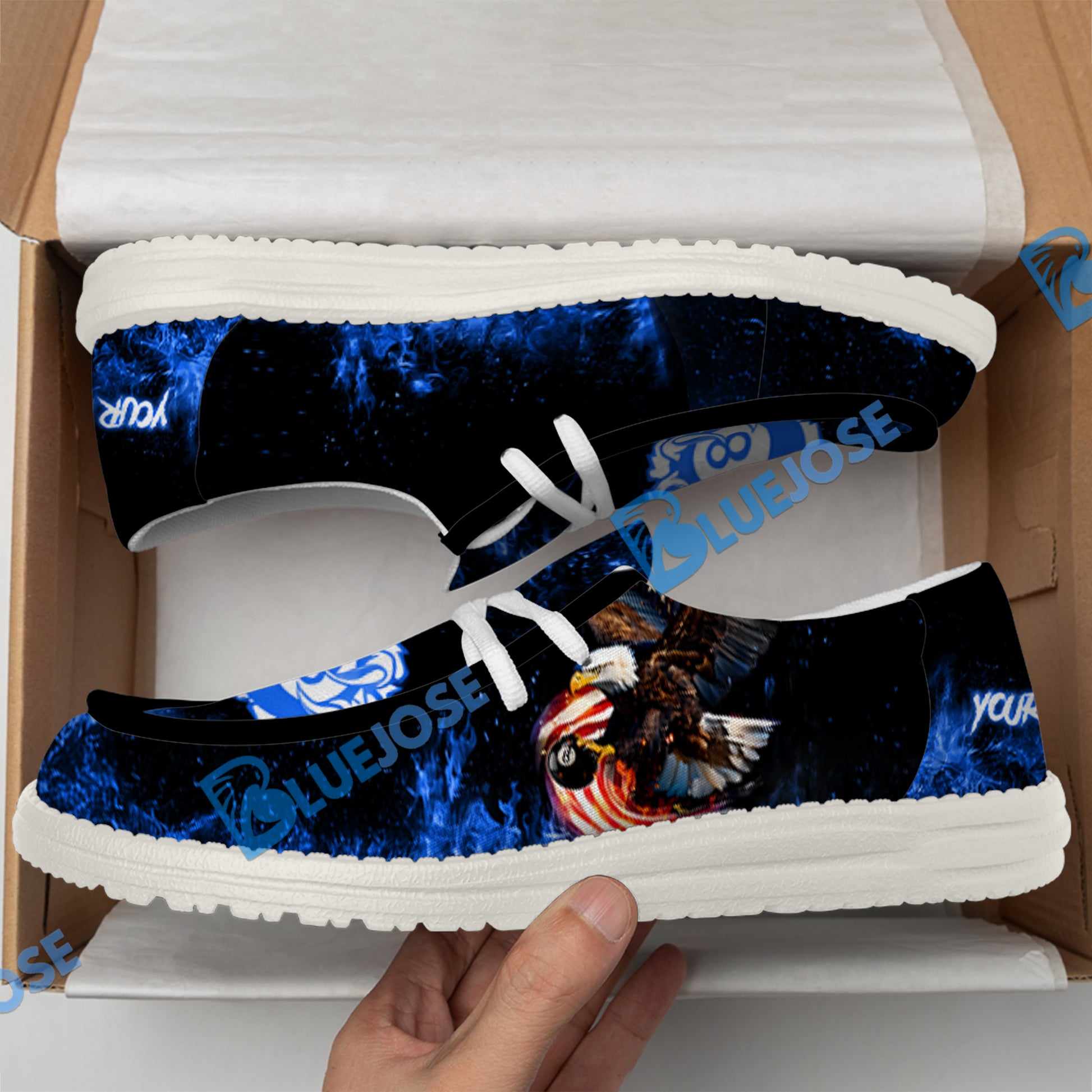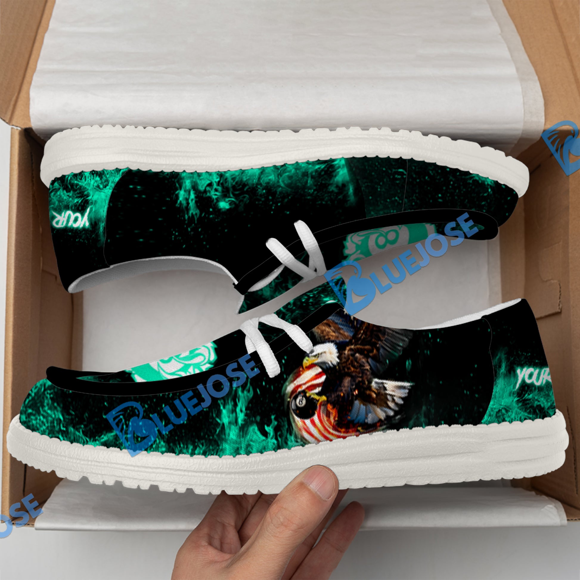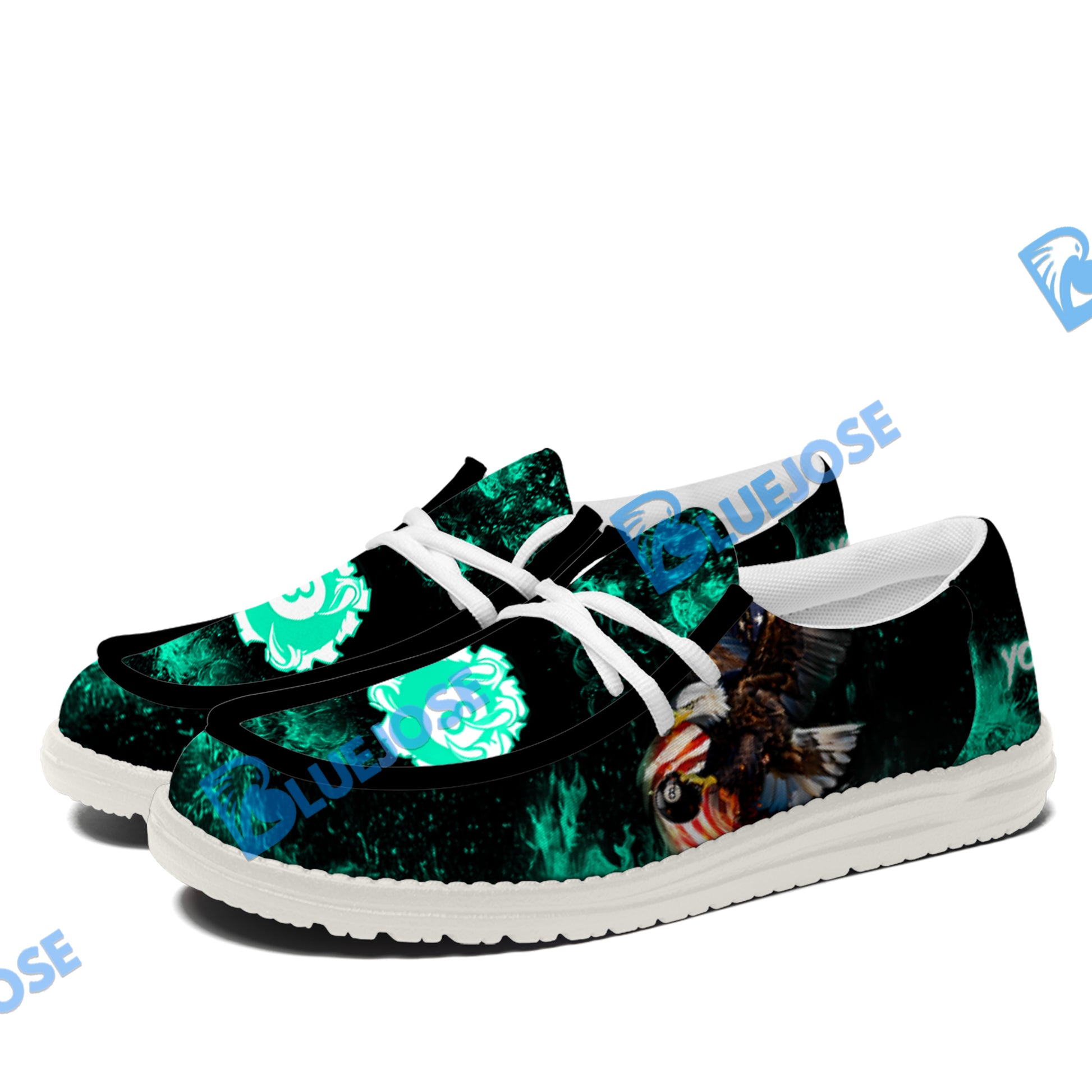 BlueJose Billiard 8 Ball Eagle Fire Flame White Canvas Loafer Shoes ( 4 Colors )