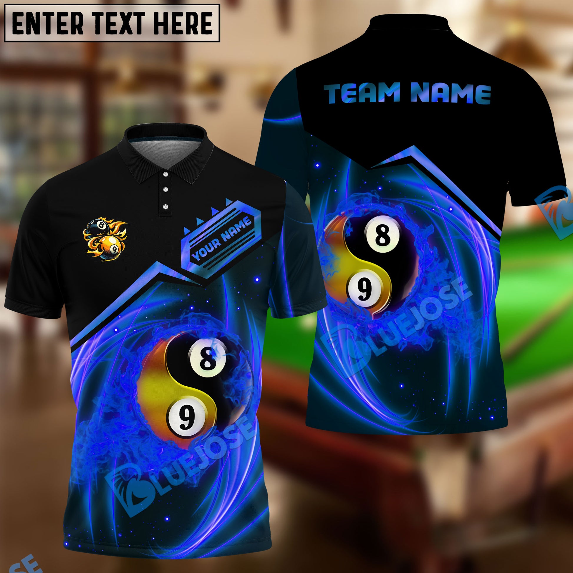 BlueJose Billiards 8&9 Ball Yin Yang Cosmic Battle Personalized Name Shirt (4 Colors)