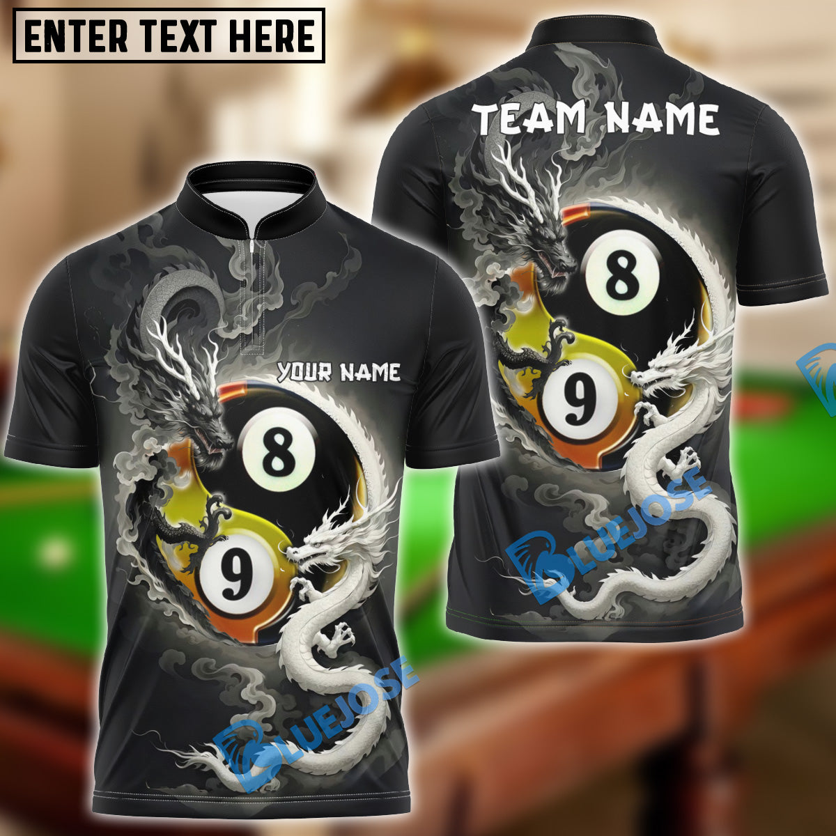 BlueJose Billiards 8 And 9 Ball Black And White Dragon Couple Personalized Shirt