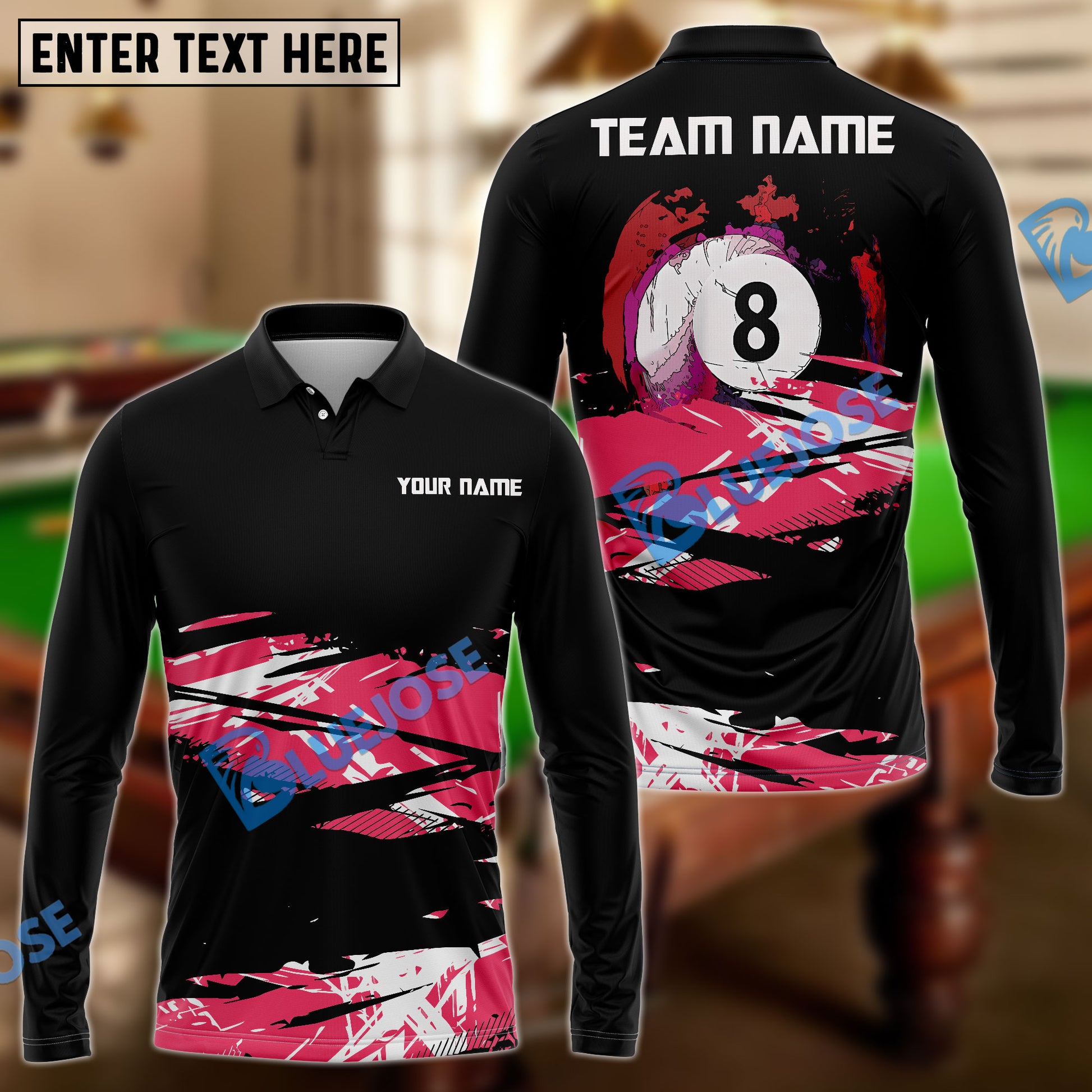 BlueJose Billiards 8 Ball Black and Pink Customized Name, Team Name Unisex Shirt