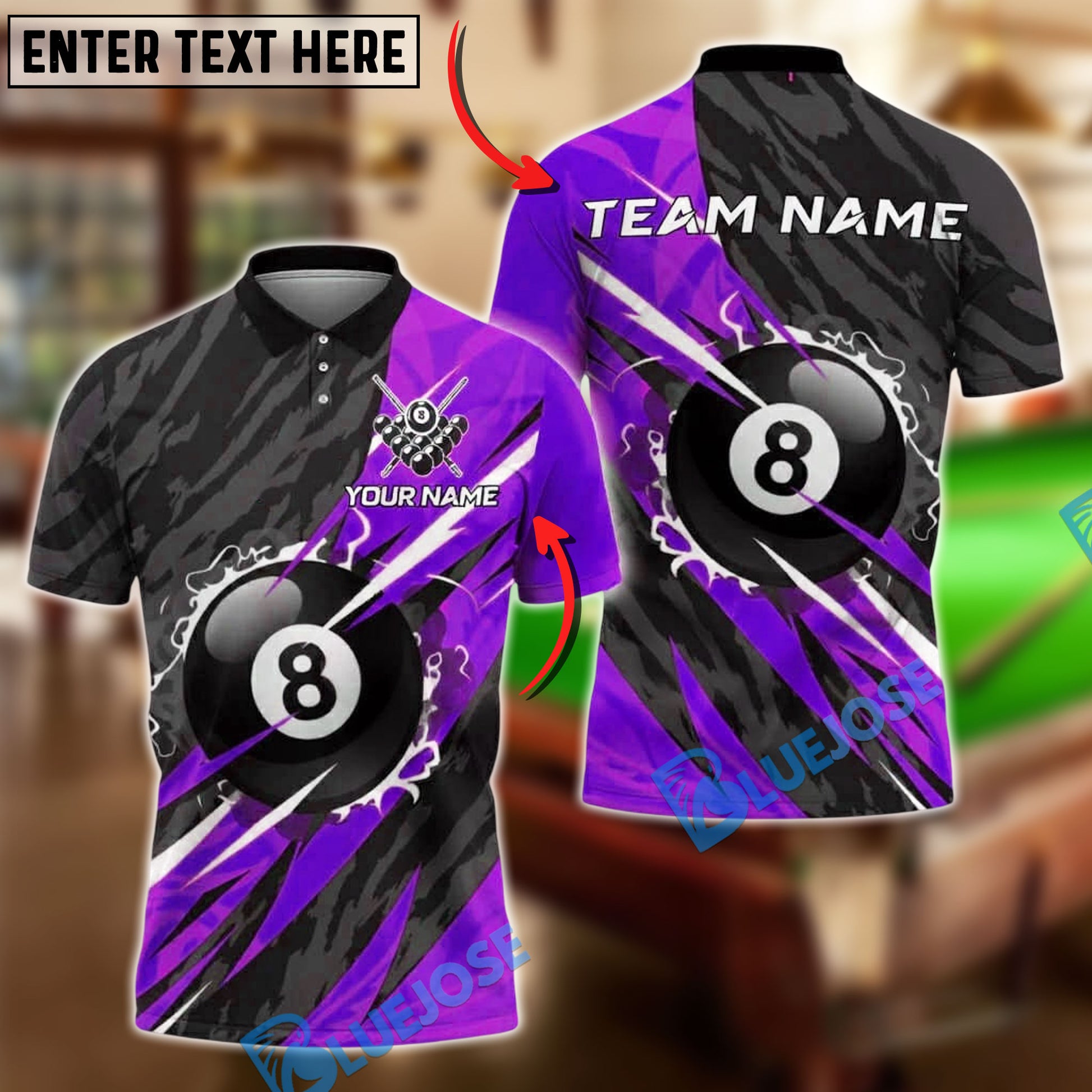 BlueJose Billiards 8 Ball Black Slash Personalized Name, Team Name Unisex Shirt (4 Colors)