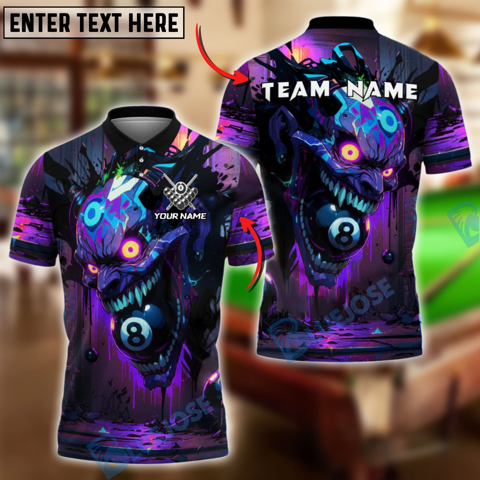 BlueJose Billiards 8-Ball Crazy Skull Jocker Colorful Graffiti Personalized Name, Team Name Unisex Shirt (4 Colors)