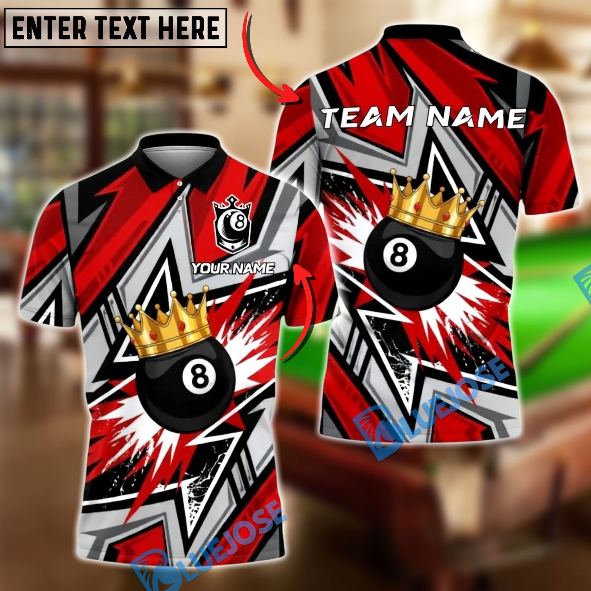 BlueJose Billiards 8 Ball Crown Splash Personalized Name, Team Name Unisex Shirt (4 Colors)