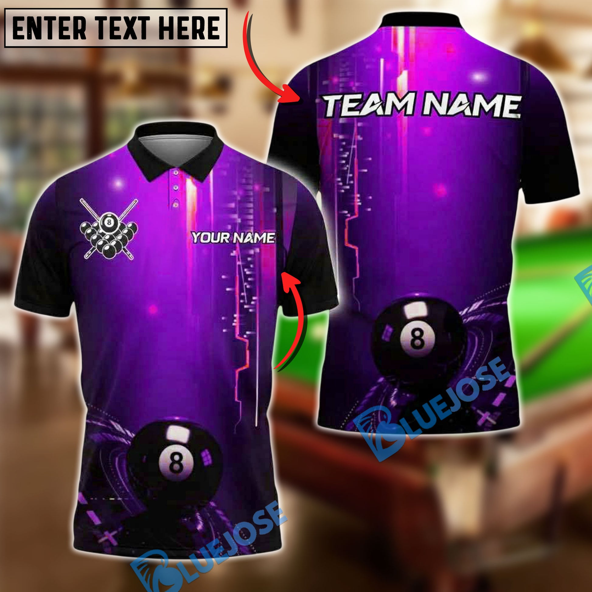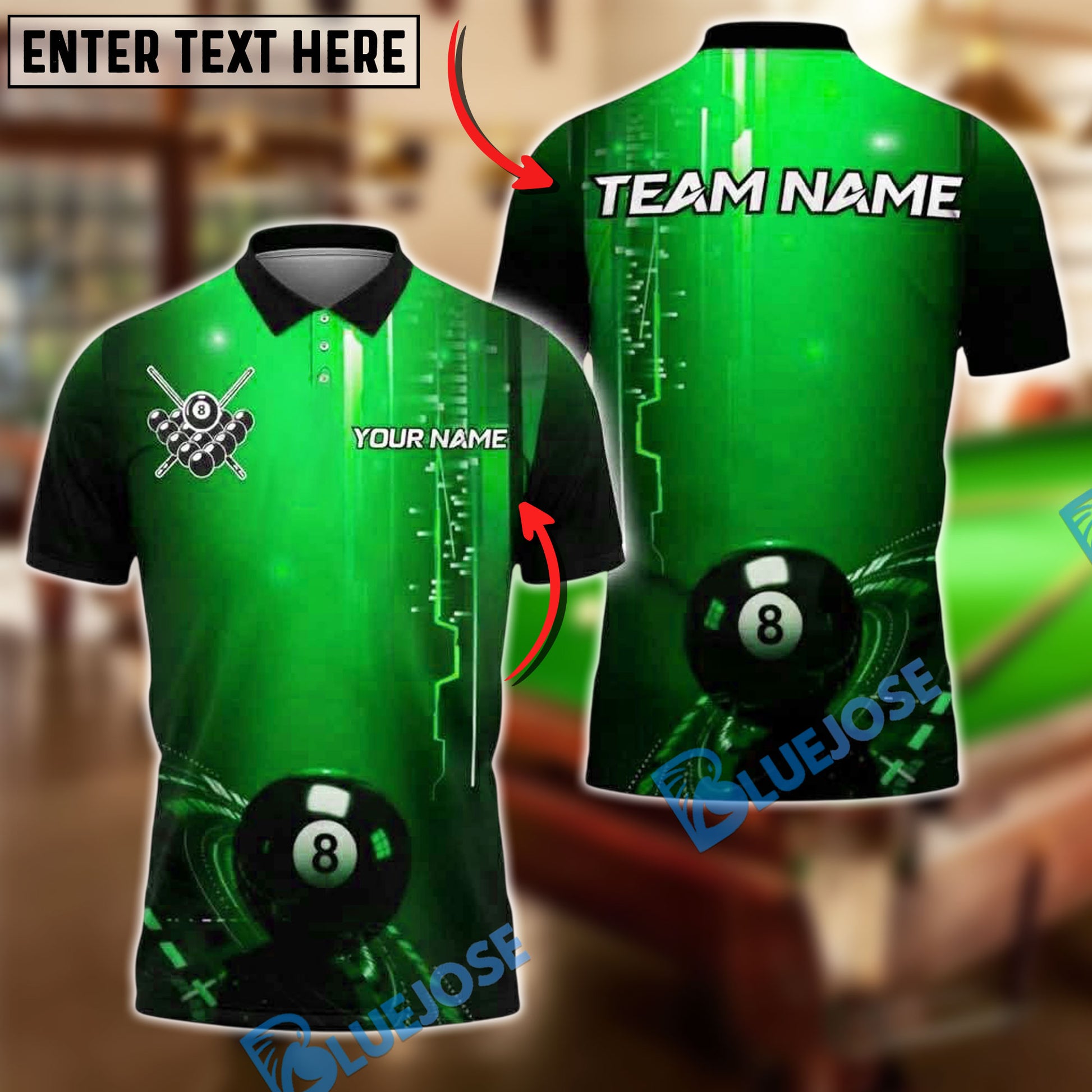 BlueJose Billiards 8 Ball Digital Glow Personalized Name, Team Name Unisex Shirt (4 Colors)