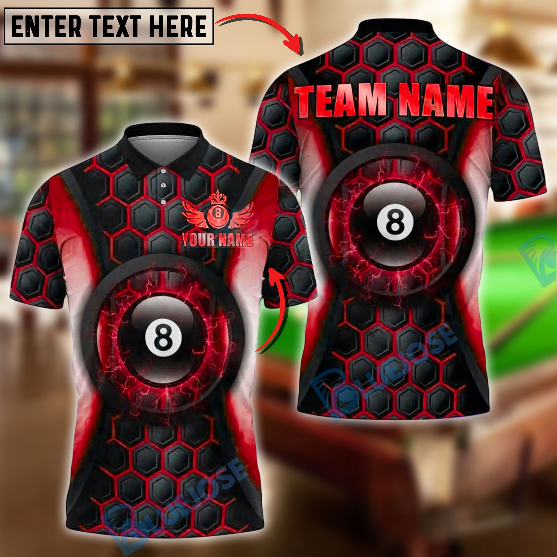 BlueJose Billiards 8 Ball Electric Hexagon Personalized Name, Team Name Unisex Shirt (4 Colors)