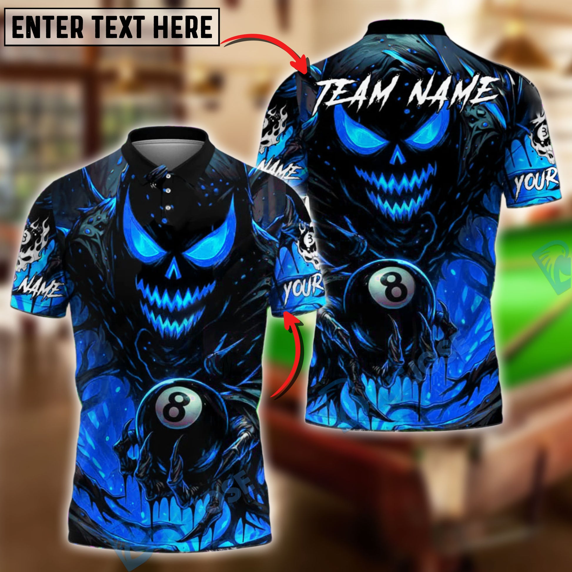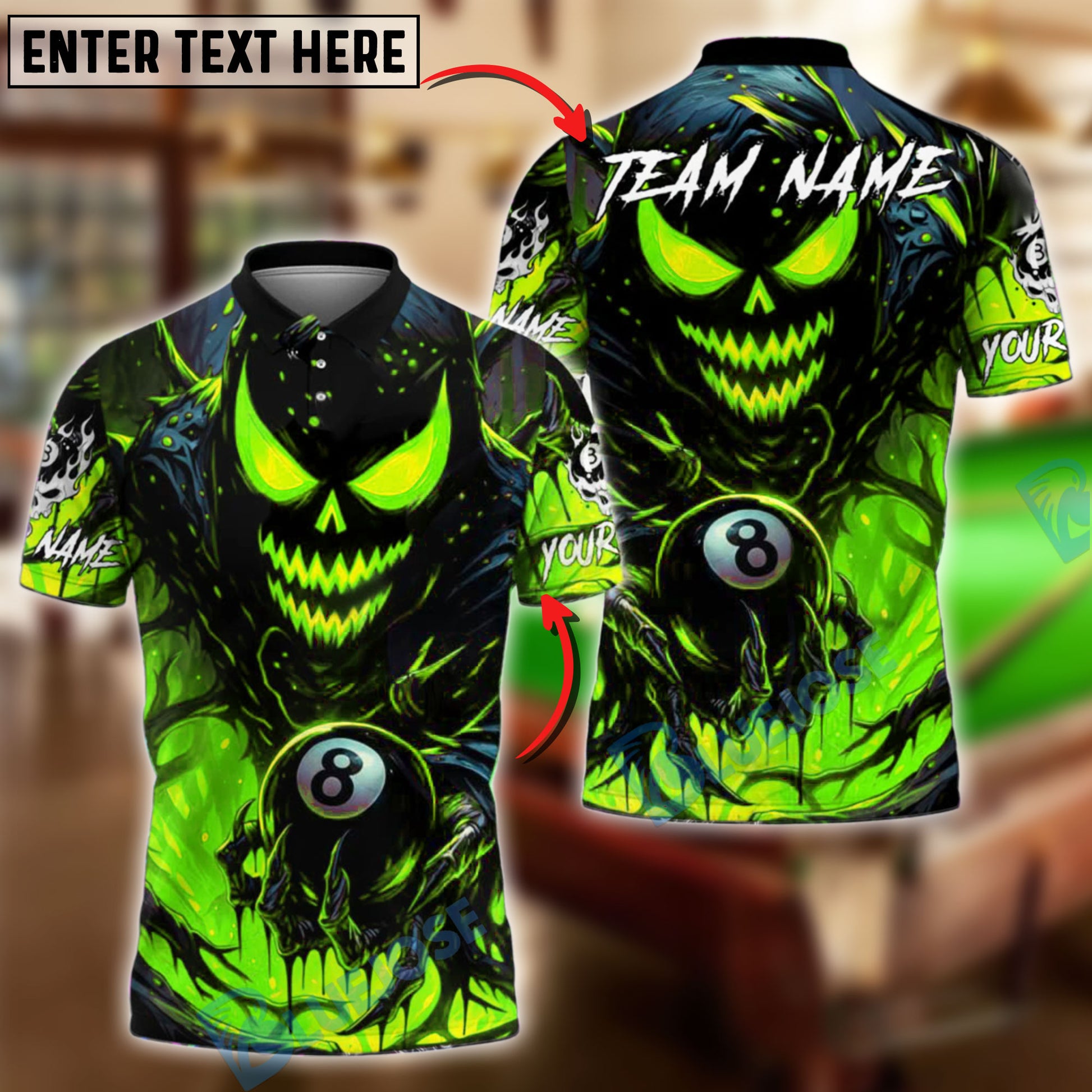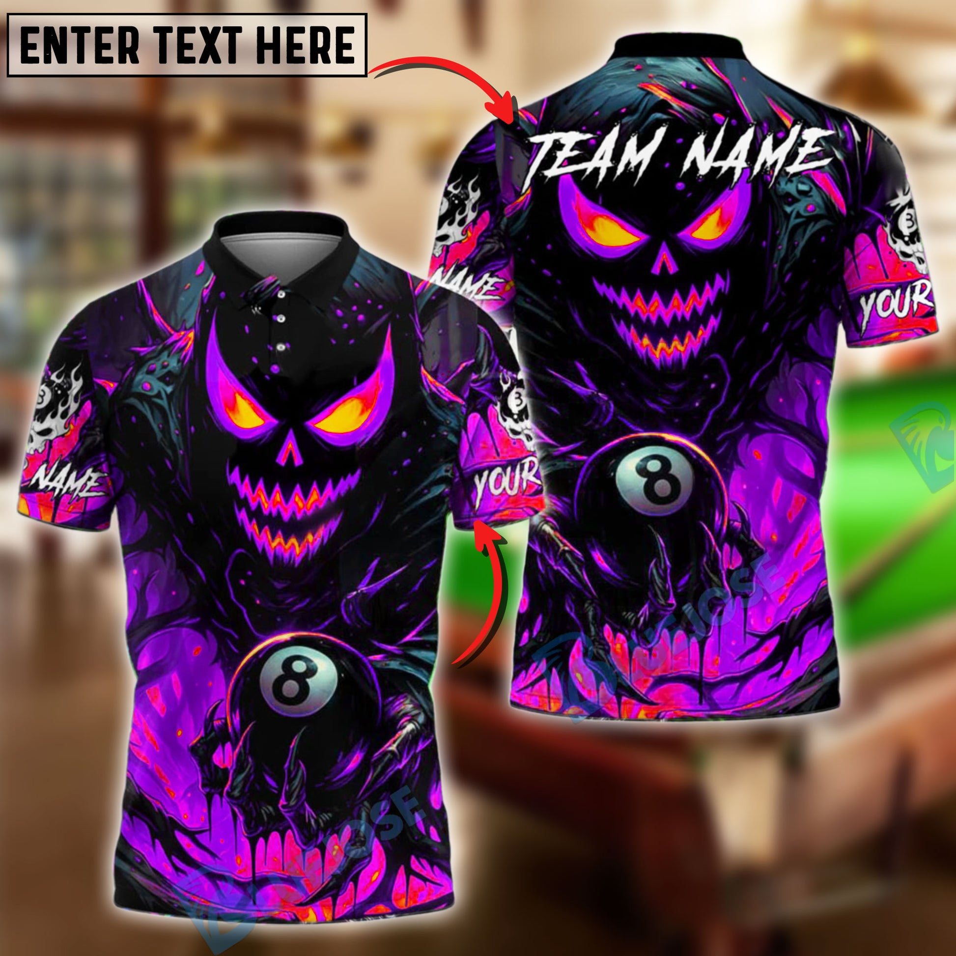 BlueJose Billiards 8 Ball Evil Pumpkin Demon Personalized Name, Team Name Unisex Shirt (4 Colors)