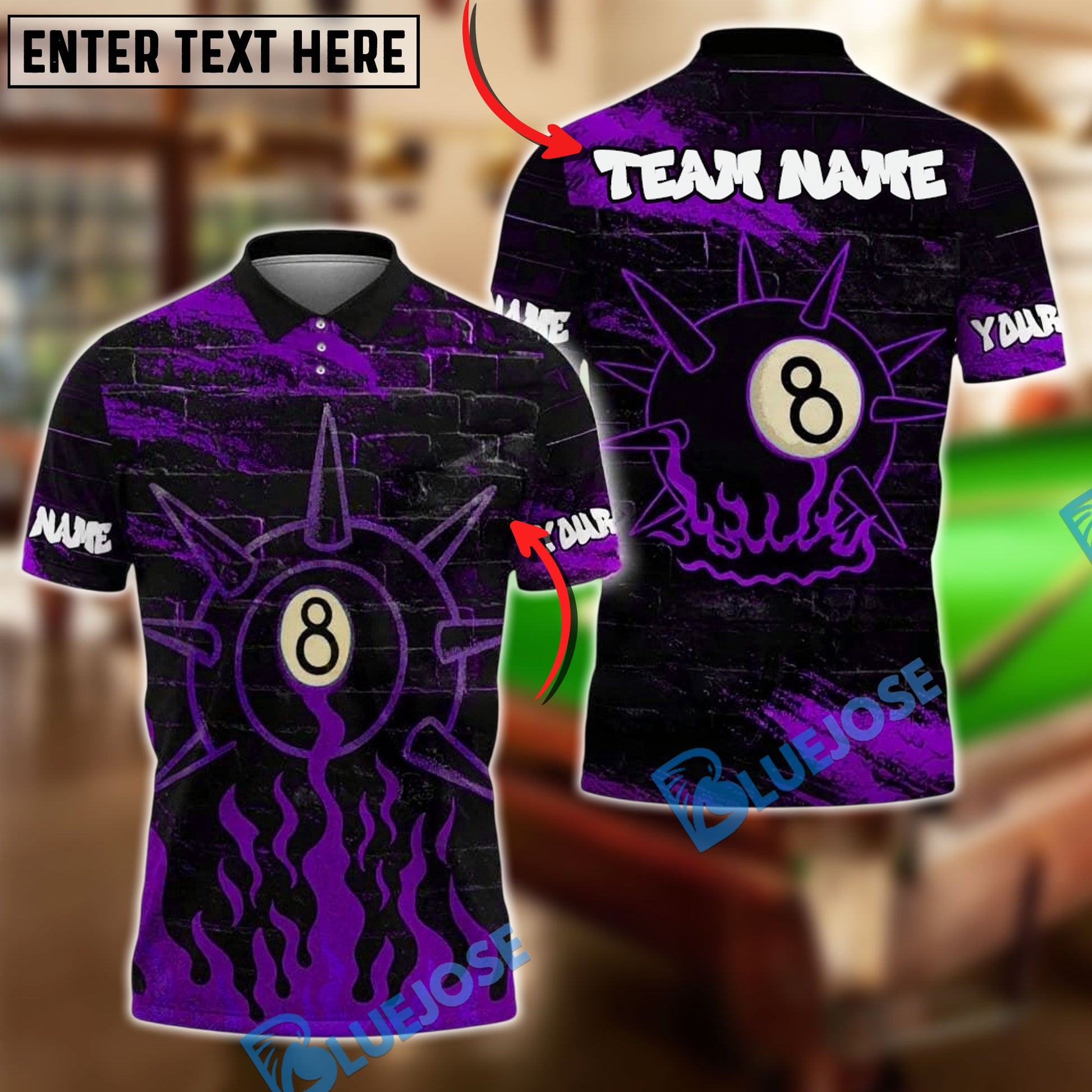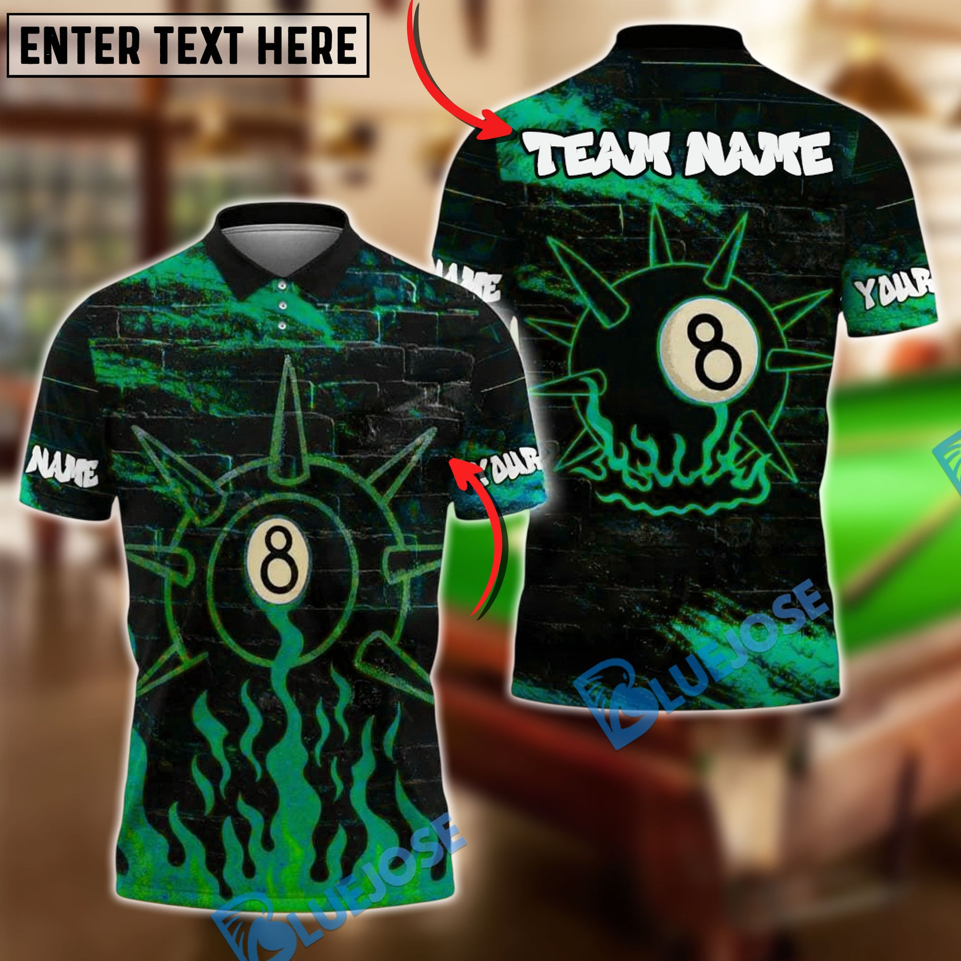 BlueJose Billiards 8 Ball Flame Spike Club Personalized Name, Team Name Unisex Shirt (4 Colors)