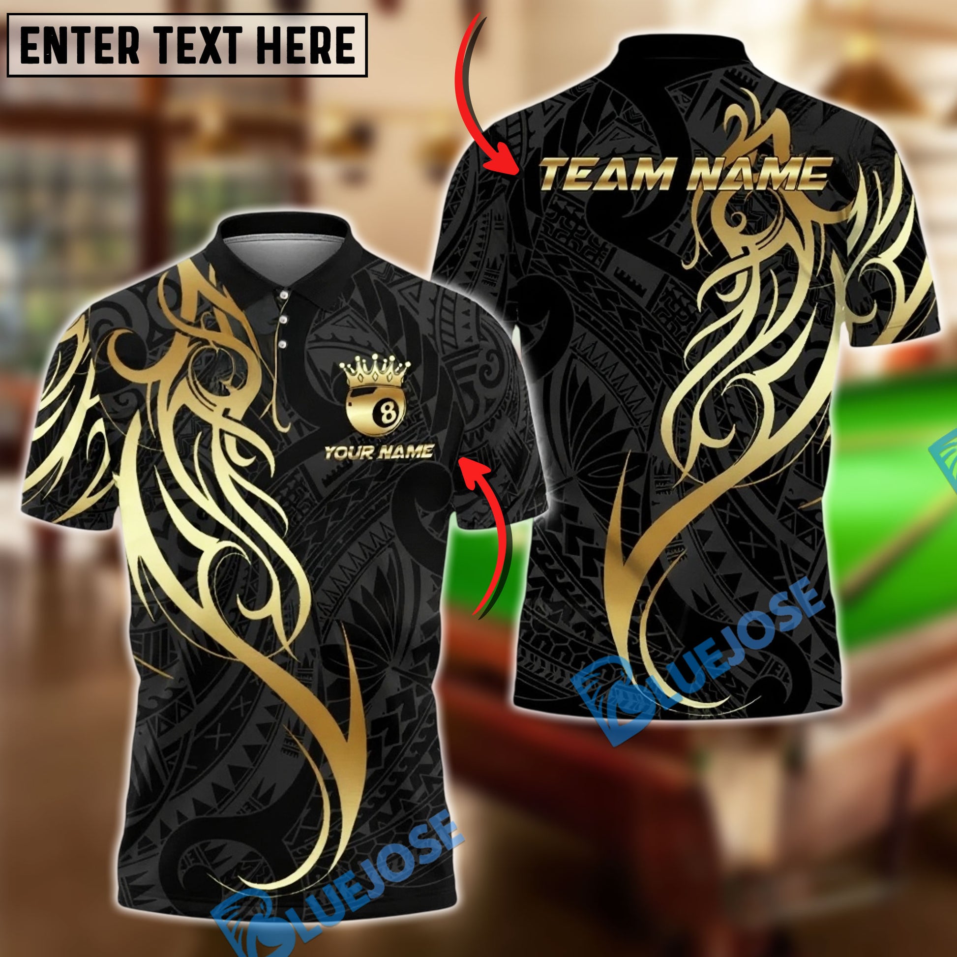 BlueJose Billiards 8 Ball Golden Tribal Crown Personalized Name, Team Name Unisex Shirt (4 Colors)