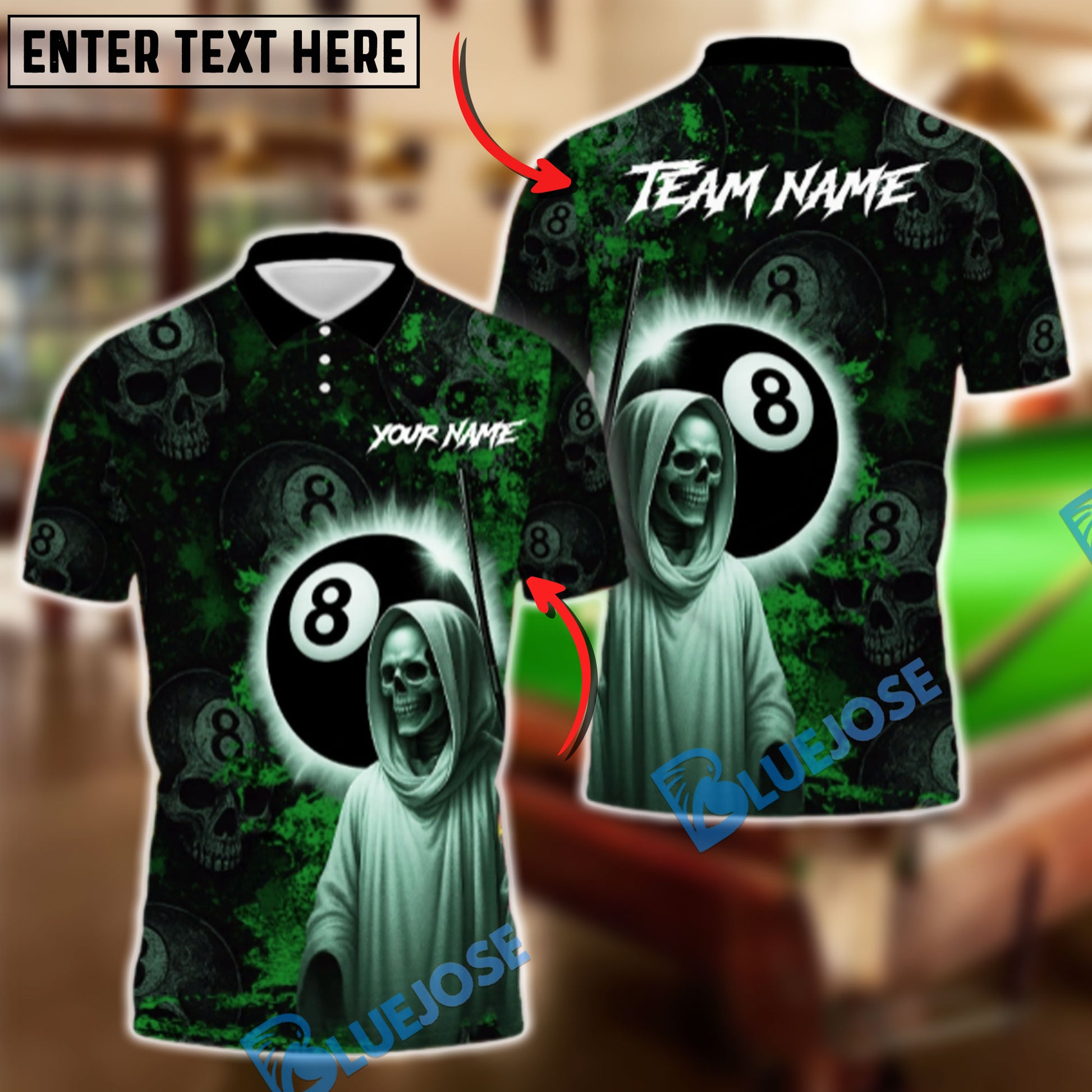 BlueJose Billiards 8 Ball Gothic Skull Personalized Name, Team Name Unisex Shirt (4 Colors)