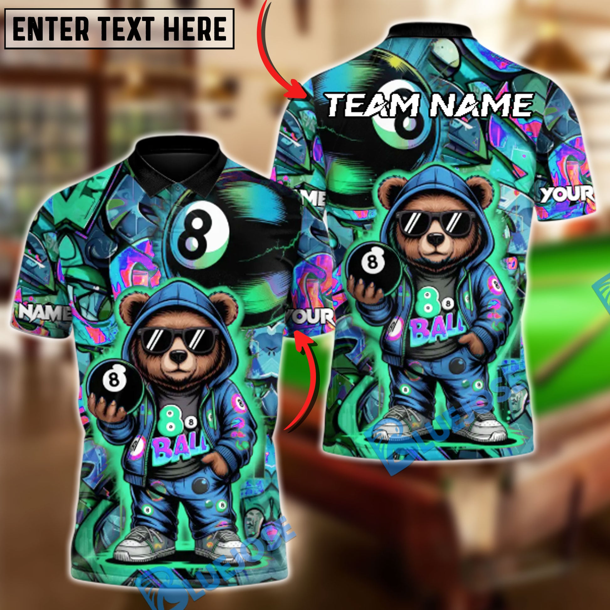 BlueJose Billiards 8 Ball Graffiti Cue Bear Personalized Name, Team Name Unisex Shirt (4 Colors)