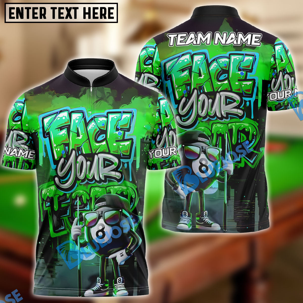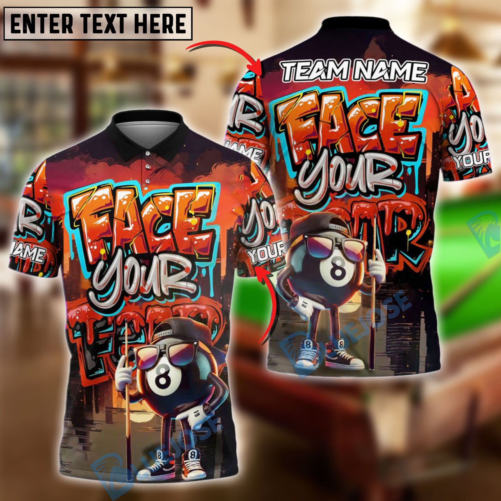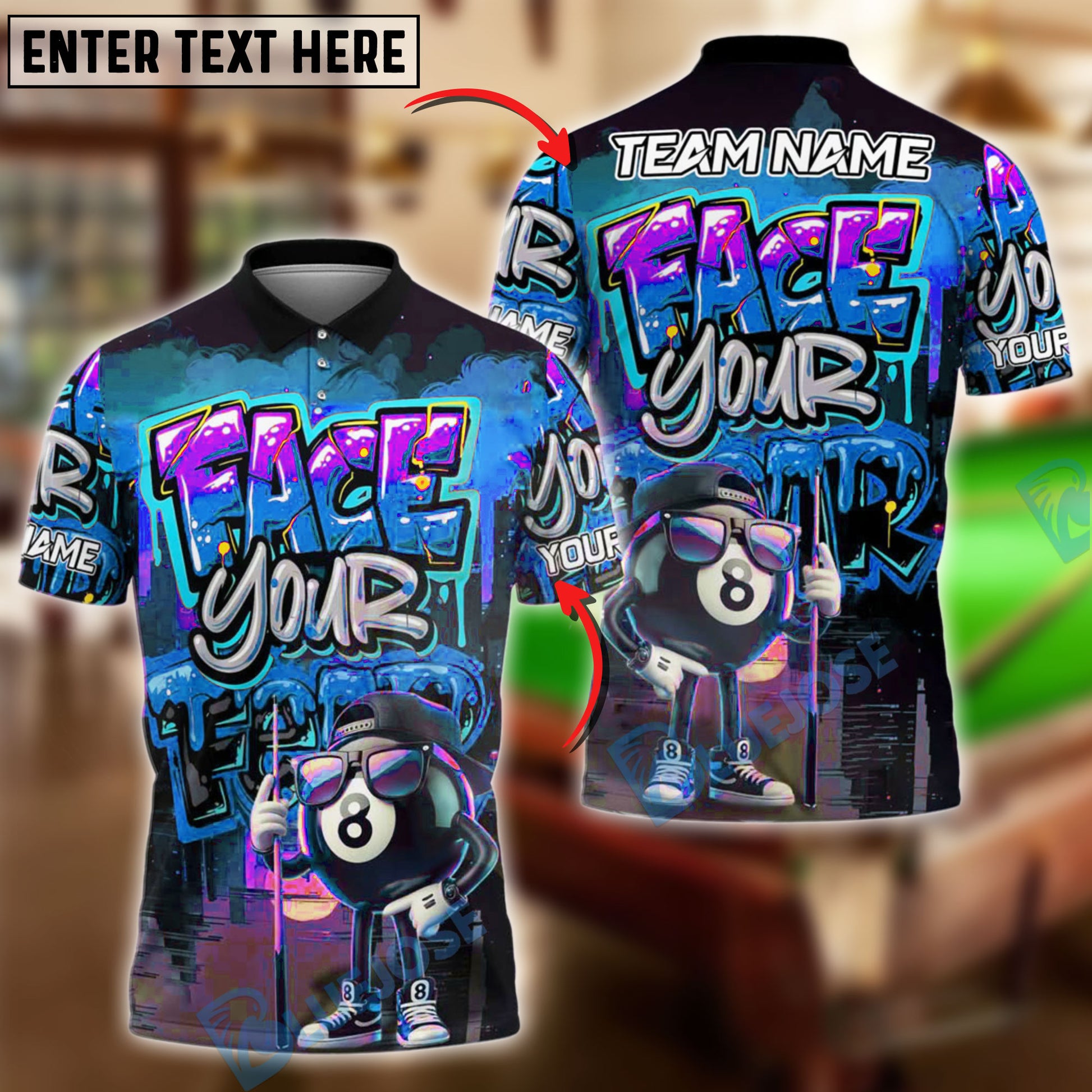 BlueJose Billiards 8 Ball Graffiti Street Art Face Your Fear Style Personalized Name, Team Name Unisex Shirt (4 Colors)