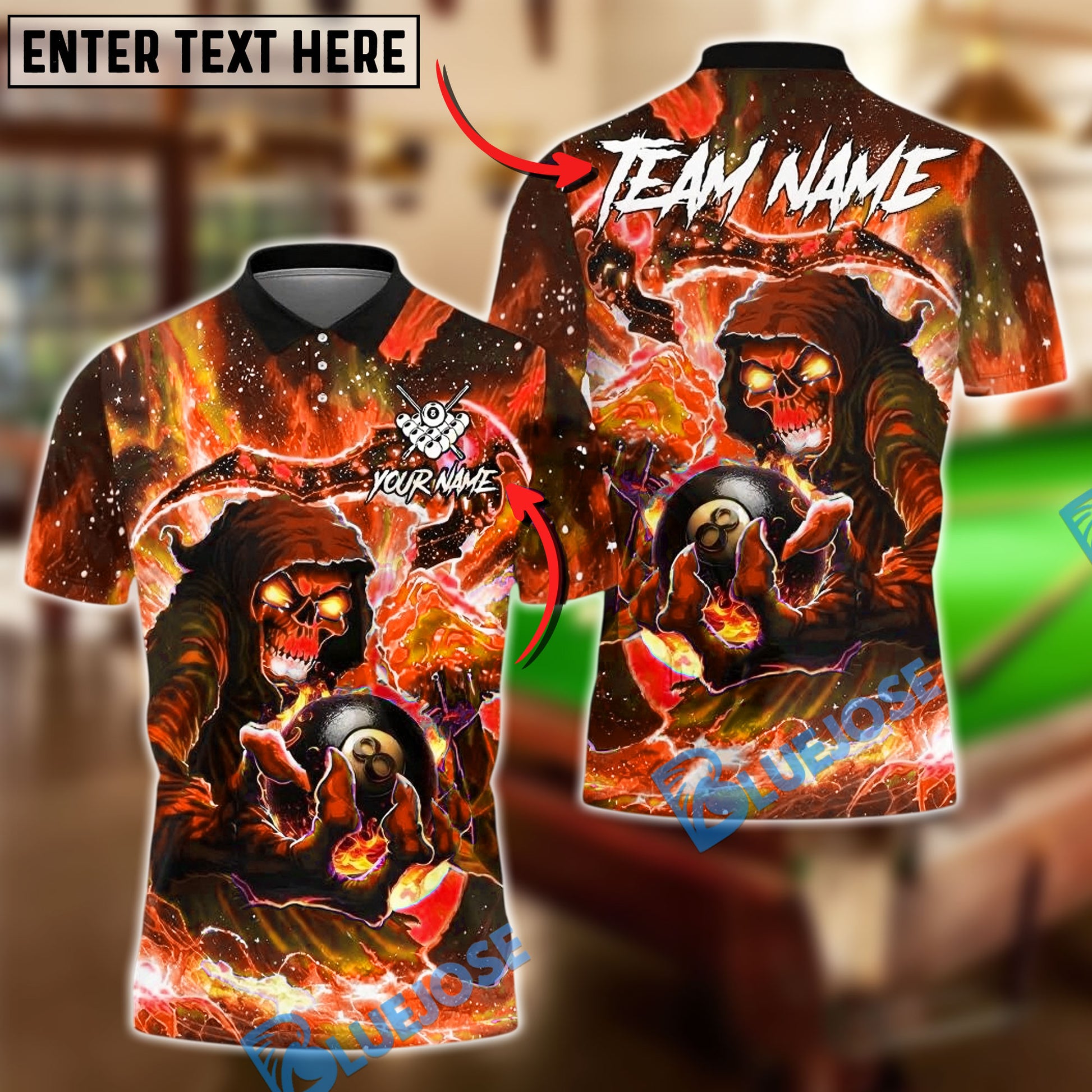 BlueJose Billiards 8 Ball Grim Reaper Cosmic Personalized Name, Team Name Unisex Shirt (4 Colors)