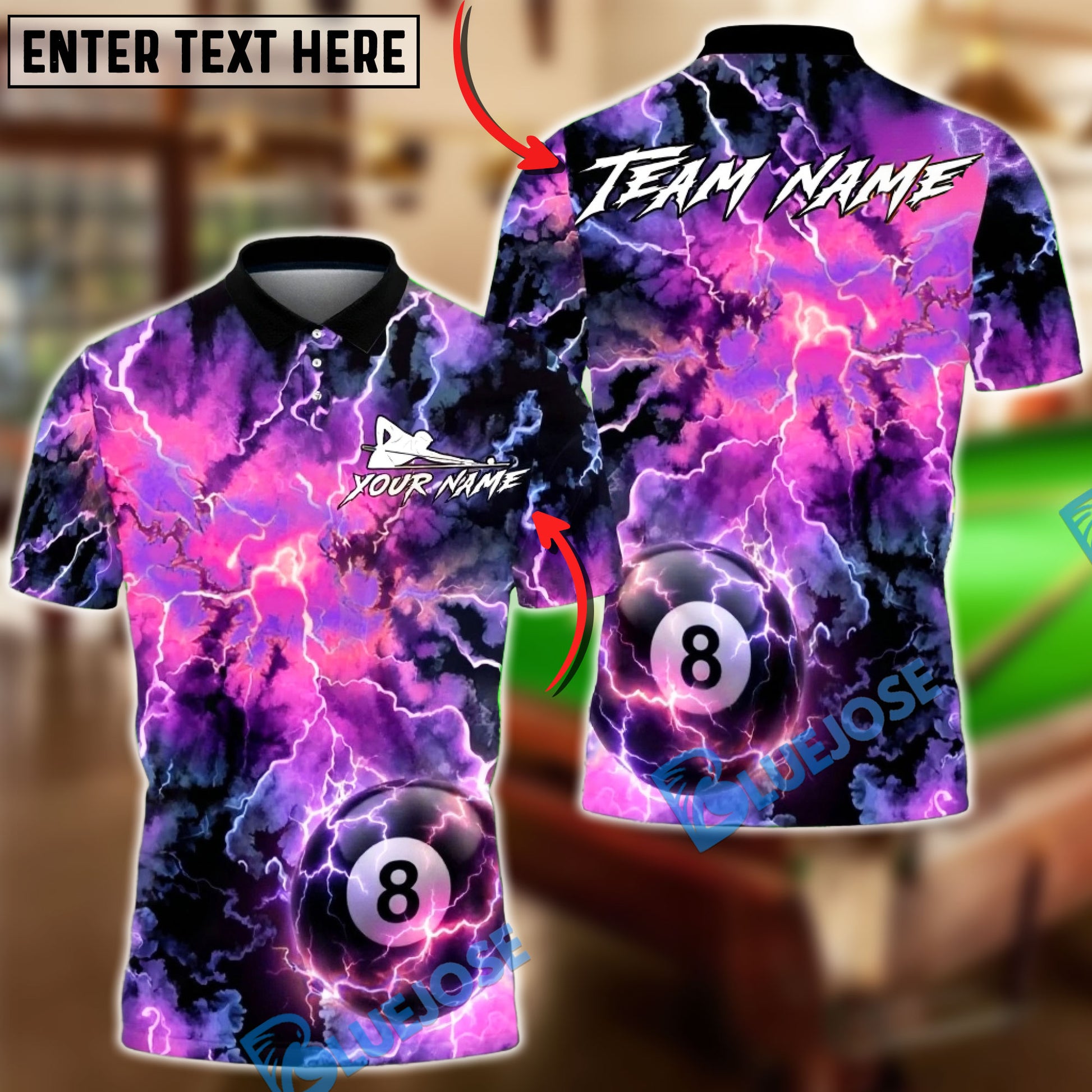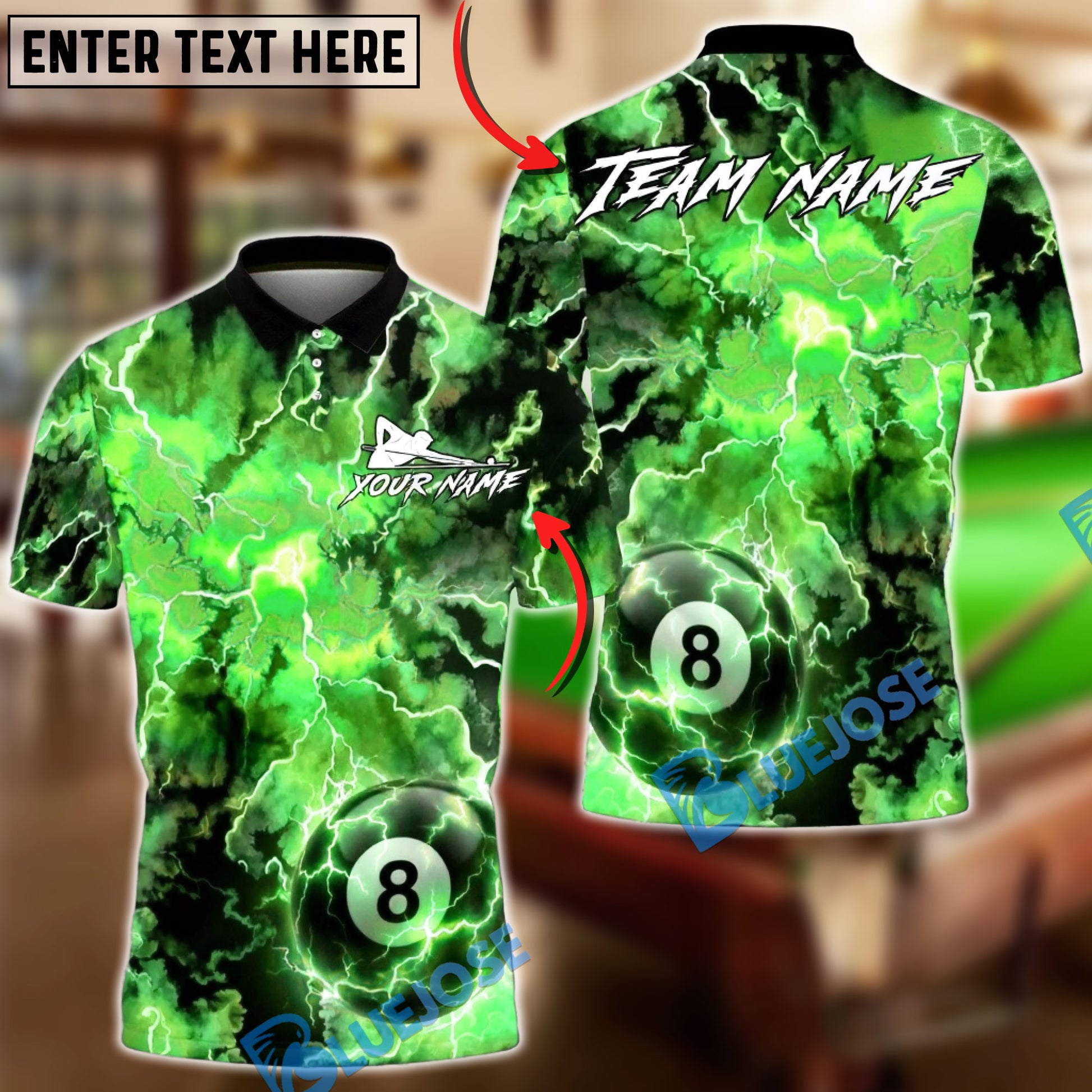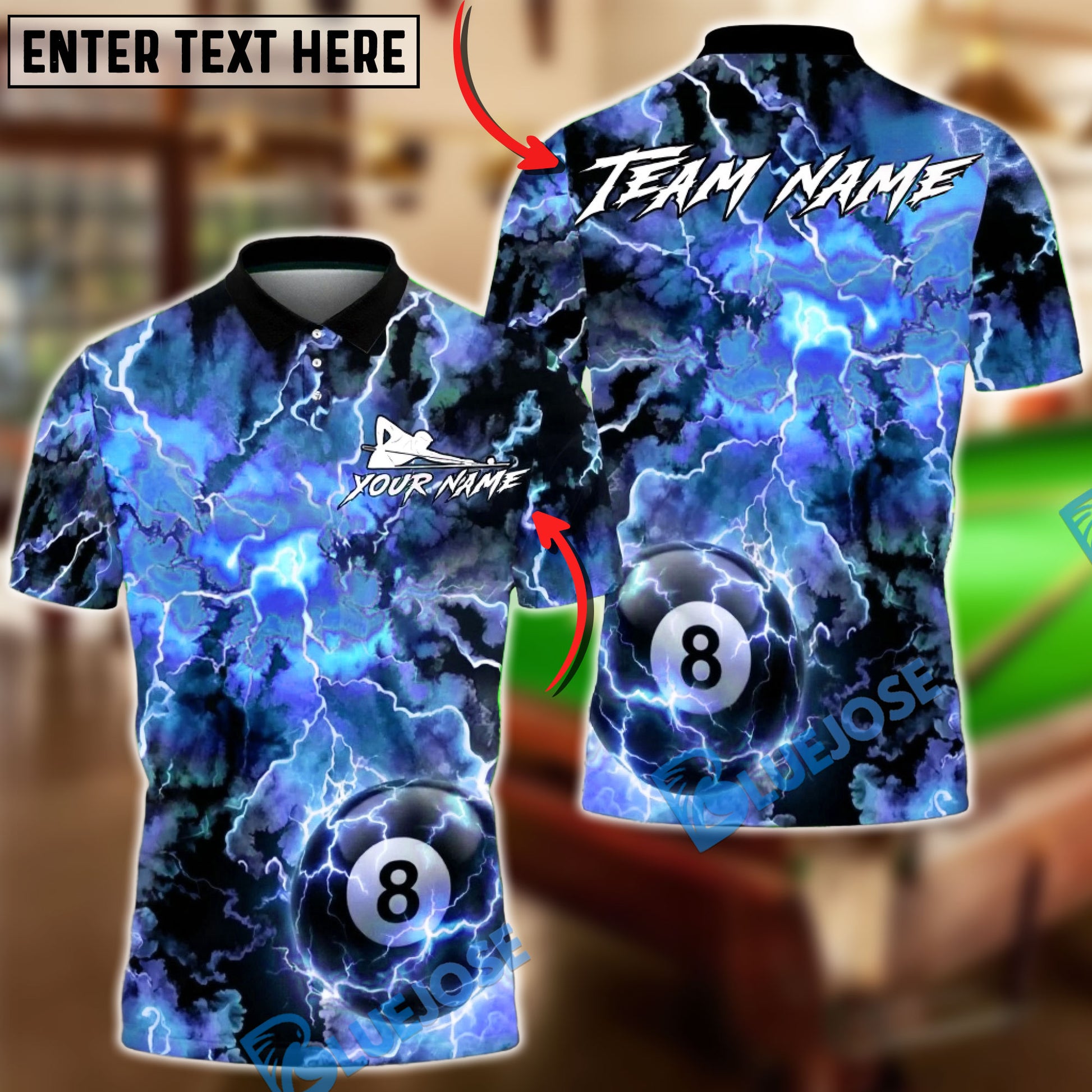 BlueJose Billiards 8-Ball Lightning Storm Personalized Name, Team Name Unisex Shirt (6 Colors)