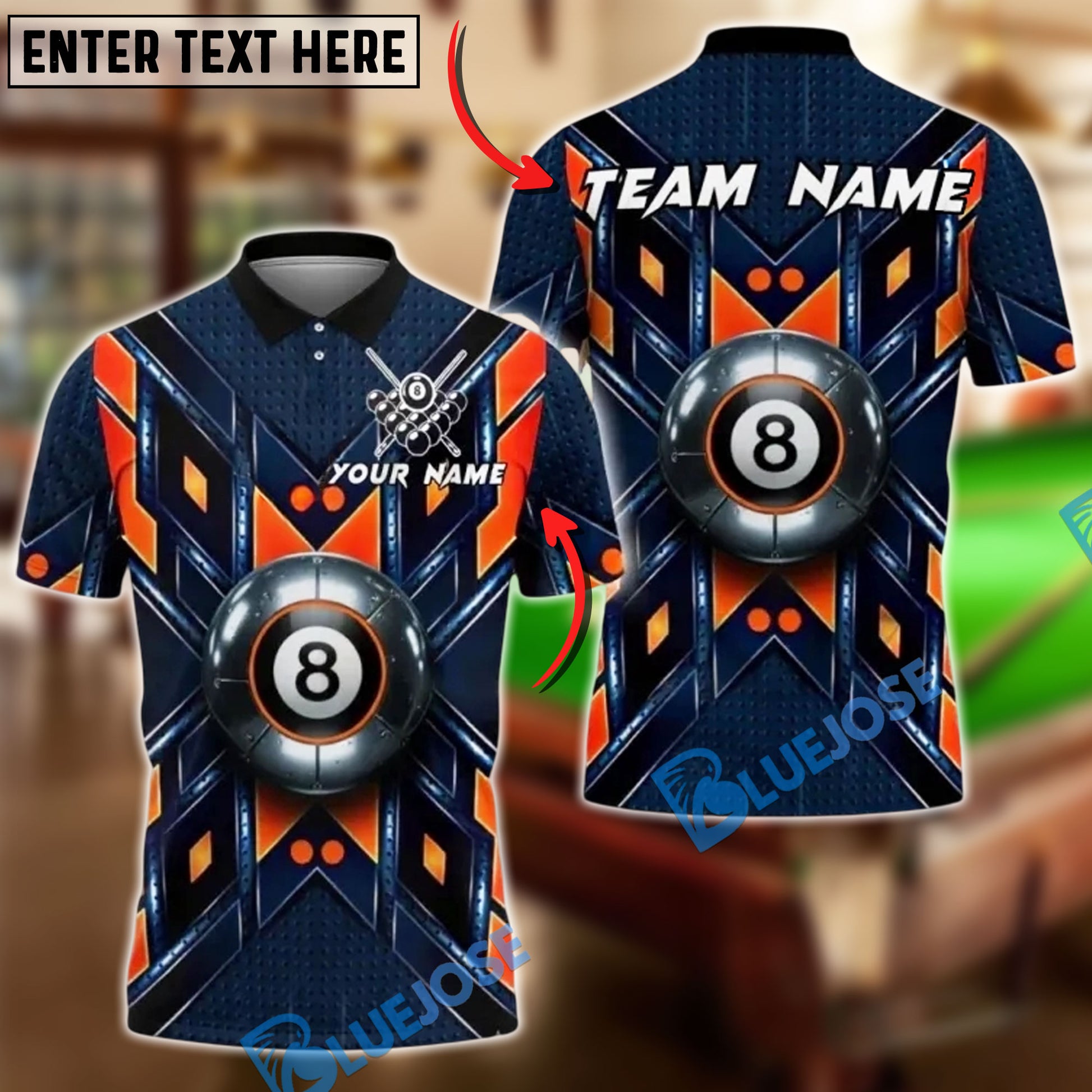 BlueJose Billiards 8 Ball Metal Shield Glow Personalized Name, Team Name Unisex Shirt (4 Colors)