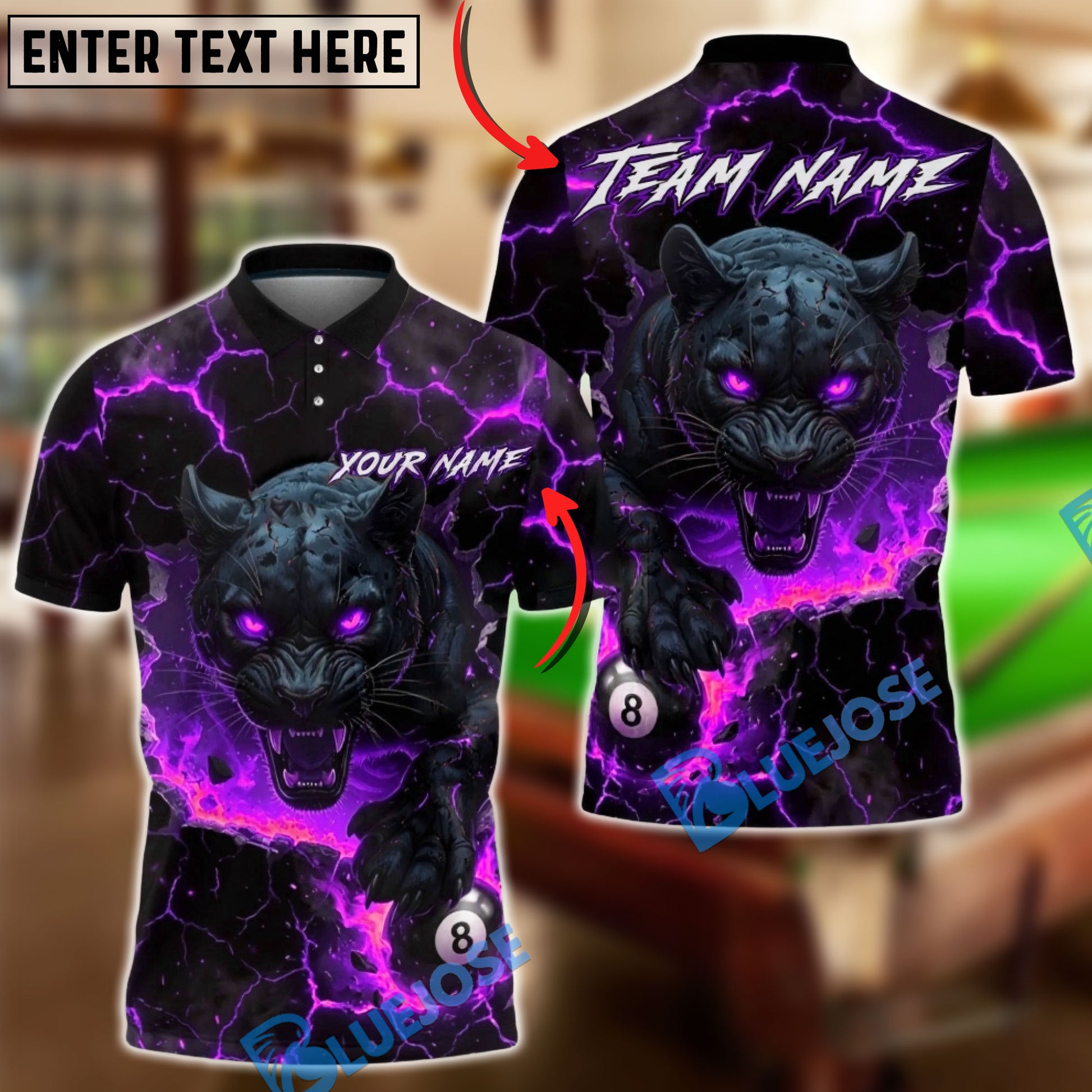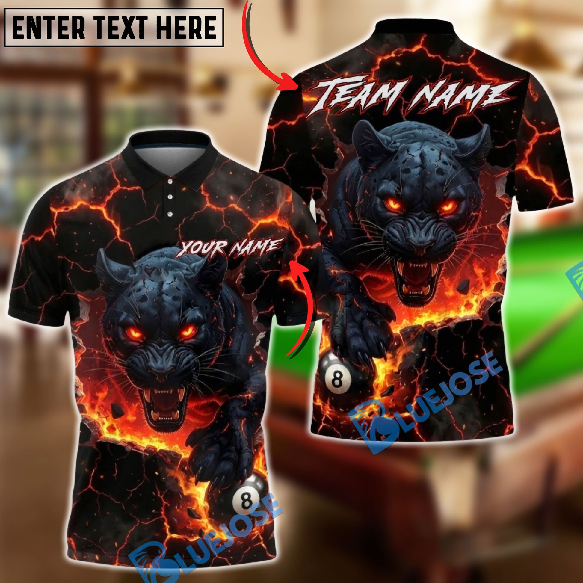 BlueJose Billiards 8-Ball Panther Fire Design Customized Name, Team Name 3D Shirt (4 Colors)