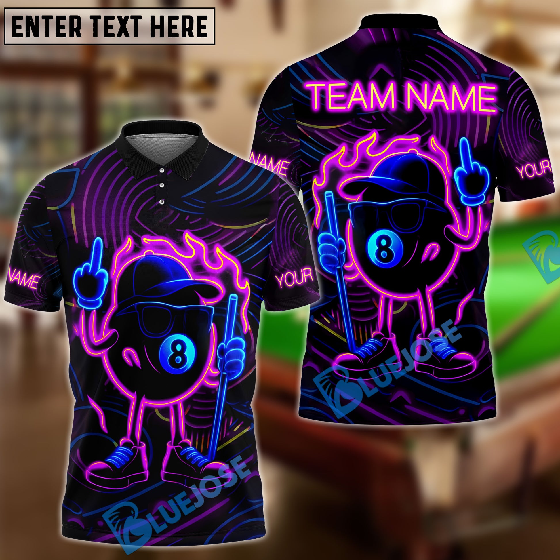 BlueJose Billiards 8 Ball Pool Neon Fire Personalized Name Shirt (4 Colors)