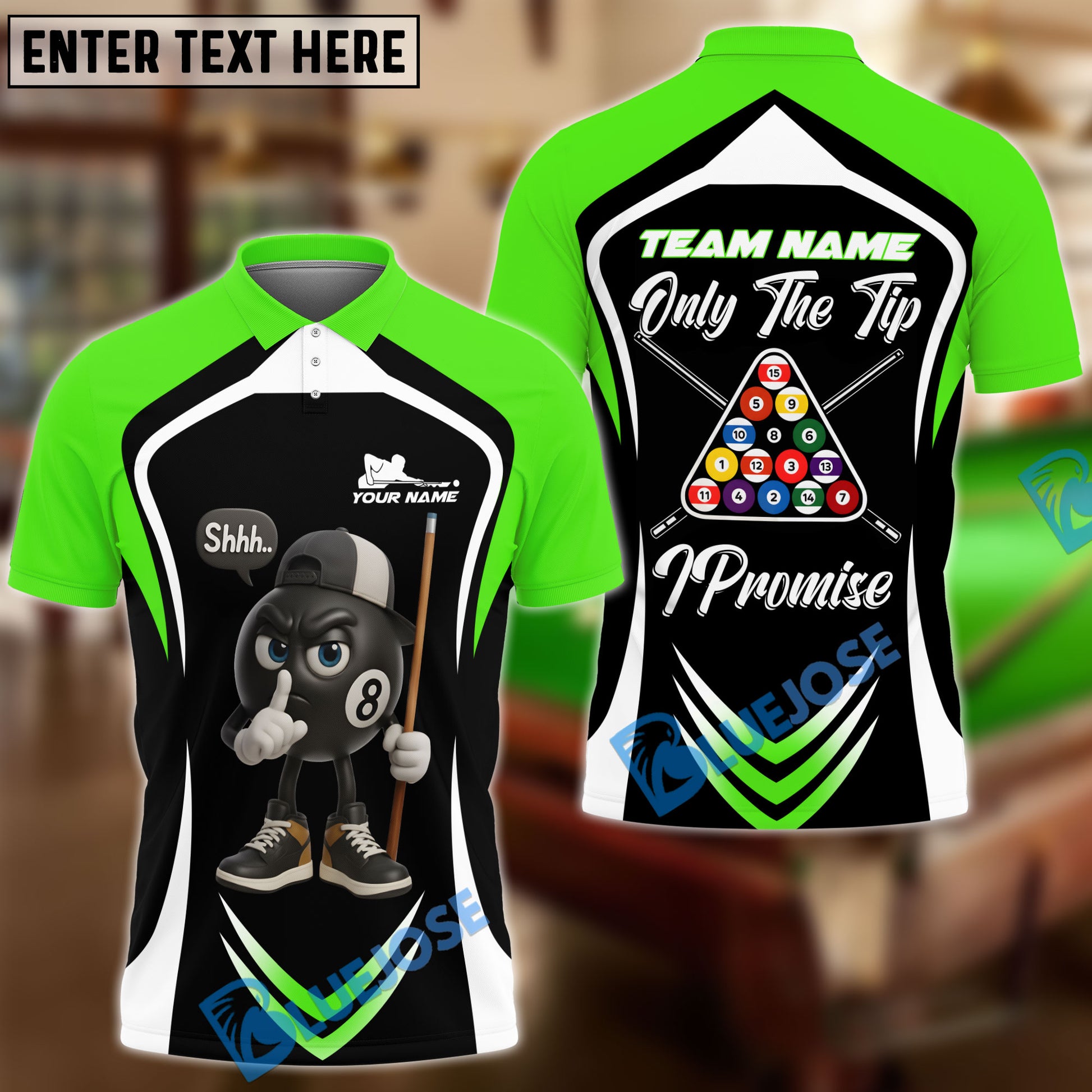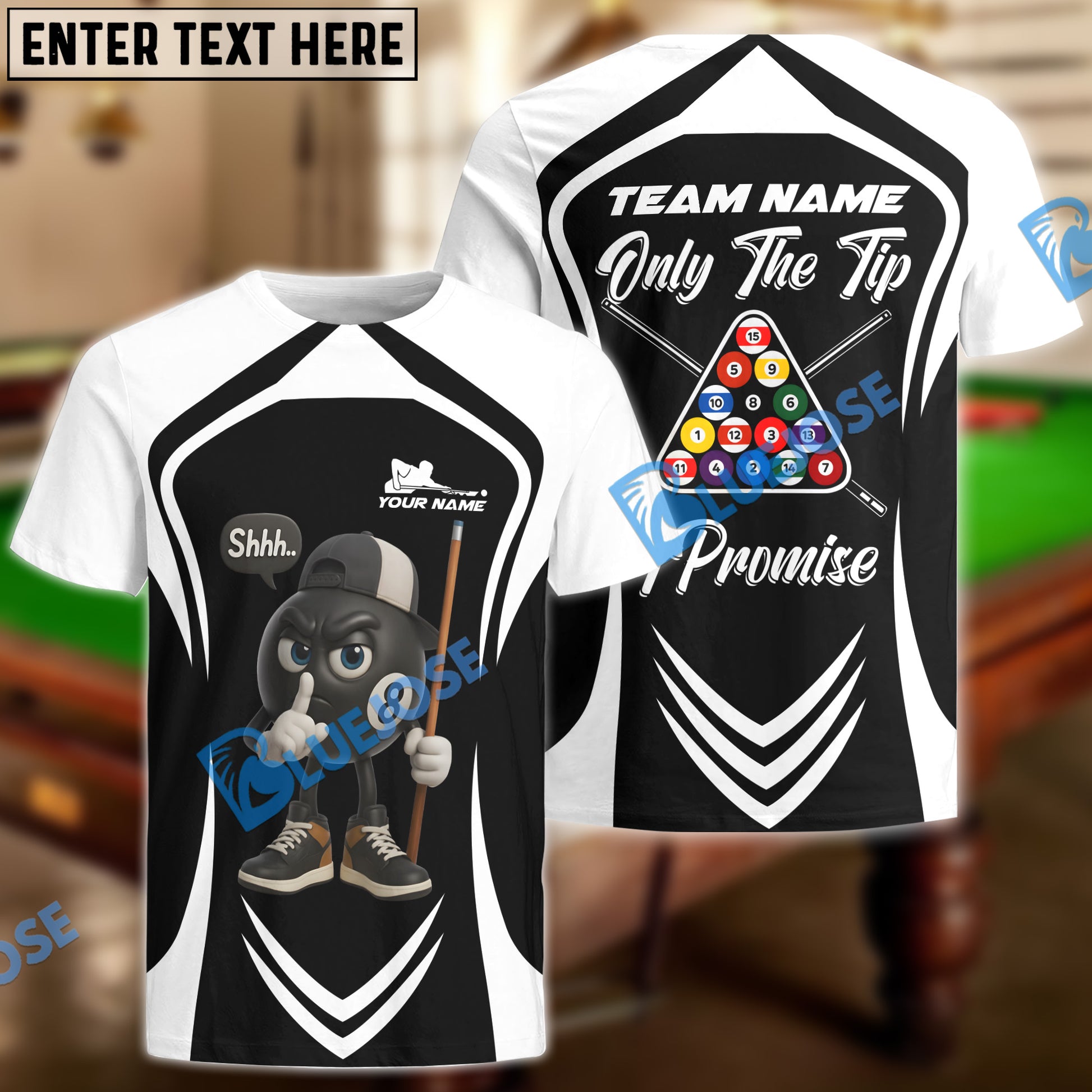 BlueJose Billiards 8-Ball Pool Only The Tip I Promise Ver Triangle Rack Personalized Name, Team Name Unisex Shirt (4 Colors)