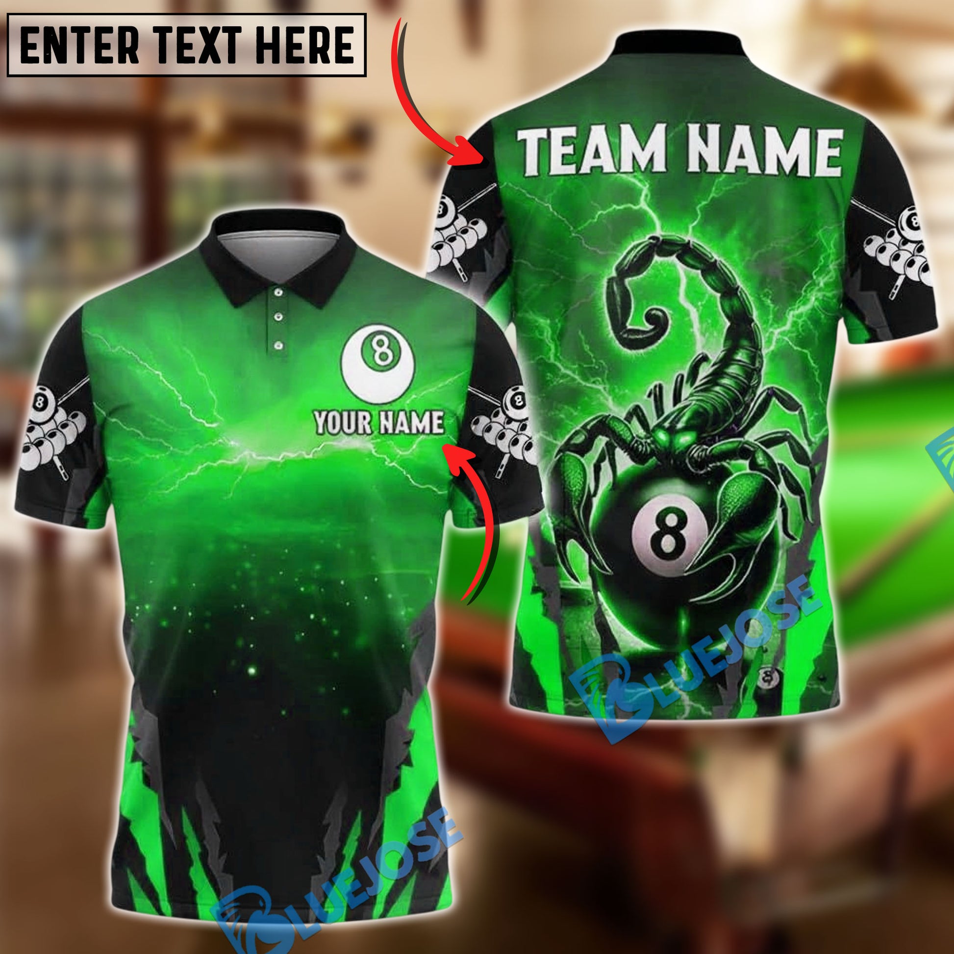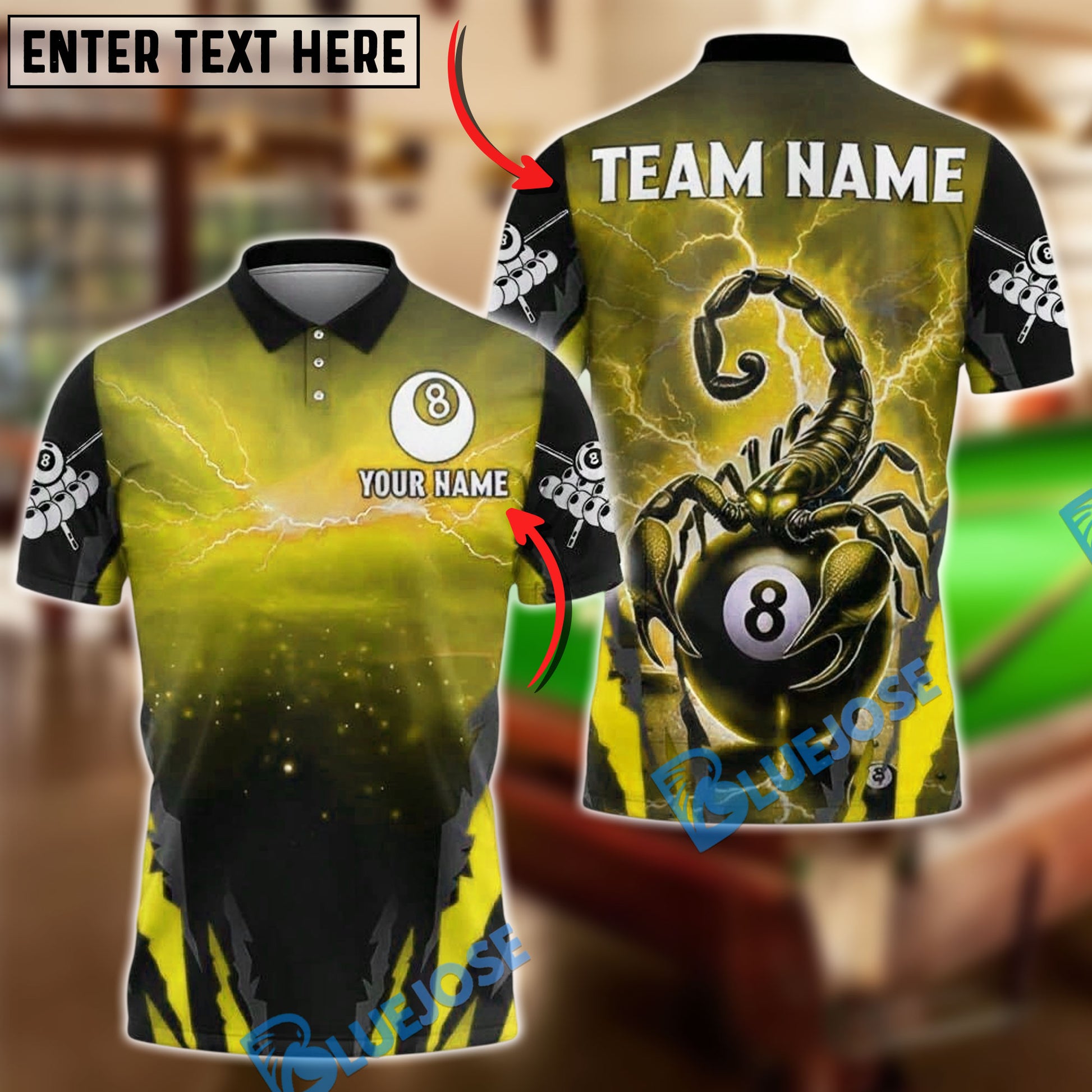 BlueJose Billiards 8 Ball Scorpion Lightning Personalized Name, Team Name Unisex Shirt (4 Colors)