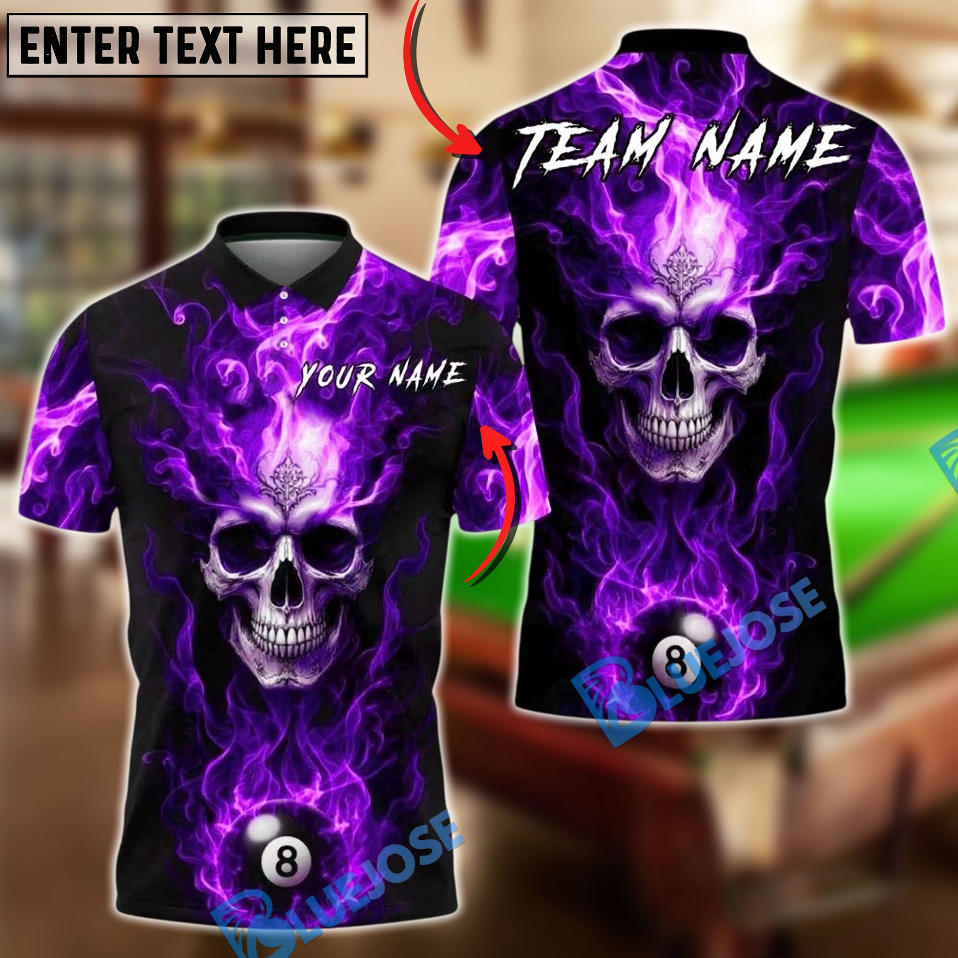 BlueJose Billiards 8 Ball Skull Fire Lord Personalized Name, Team Name Unisex Shirt (4 Colors)