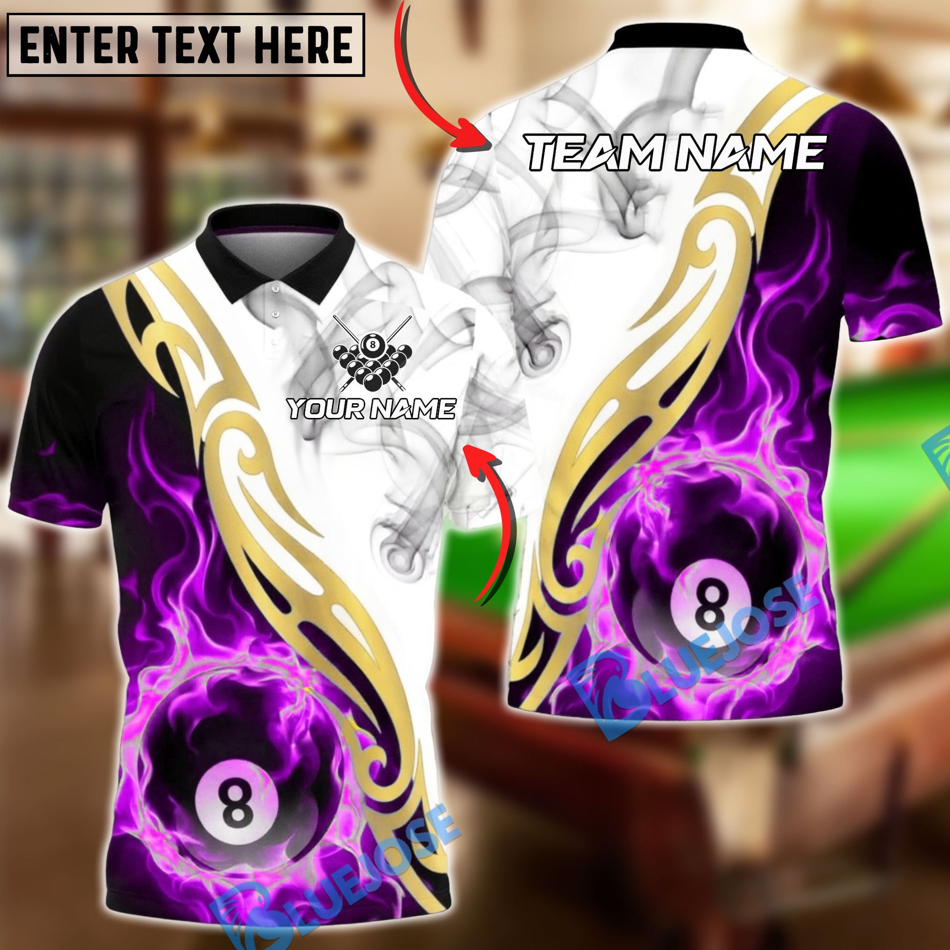 BlueJose Billiards 8 Ball Smoke Fire Gold Tribal Personalized Name, Team Name Unisex Shirt (4 Colors)