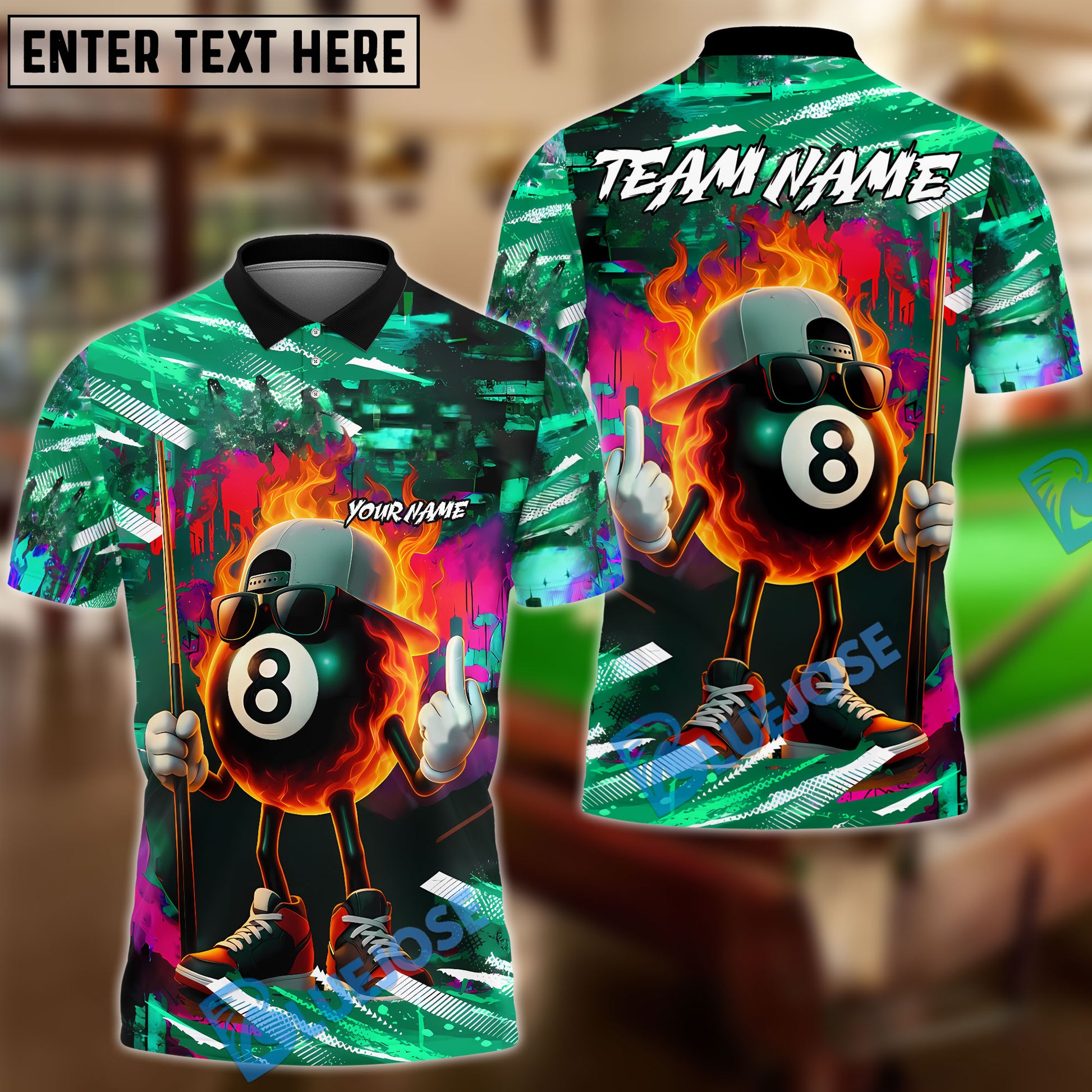 BlueJose Billiards 8 Ball Street Style Flaming Personalized Name, Team Name Unisex Shirt (4 Colors)