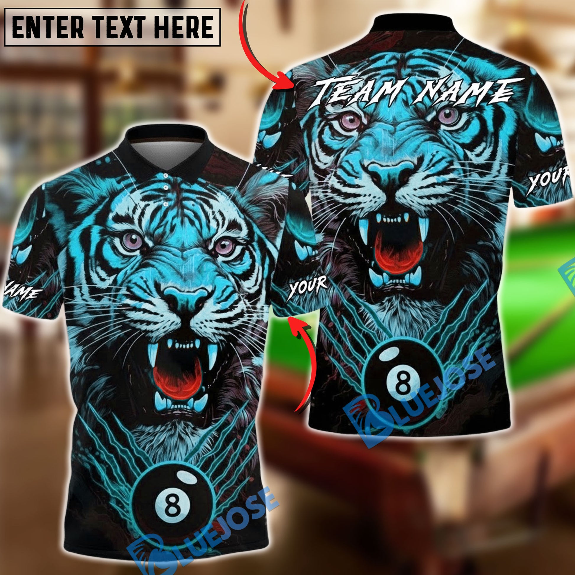 BlueJose Billiards 8 Ball Tiger Fierce Design Personalized Name, Team Name Unisex Shirt (4 Colors)