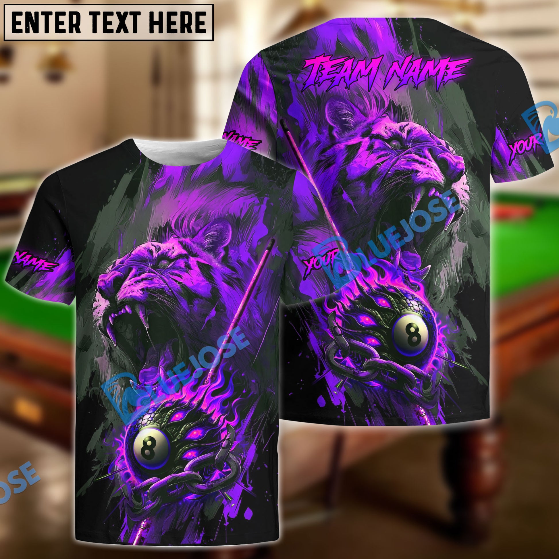 BlueJose Billiards 8-Ball Tiger Fire Chain Personalized Name Shirt (4 Colors)