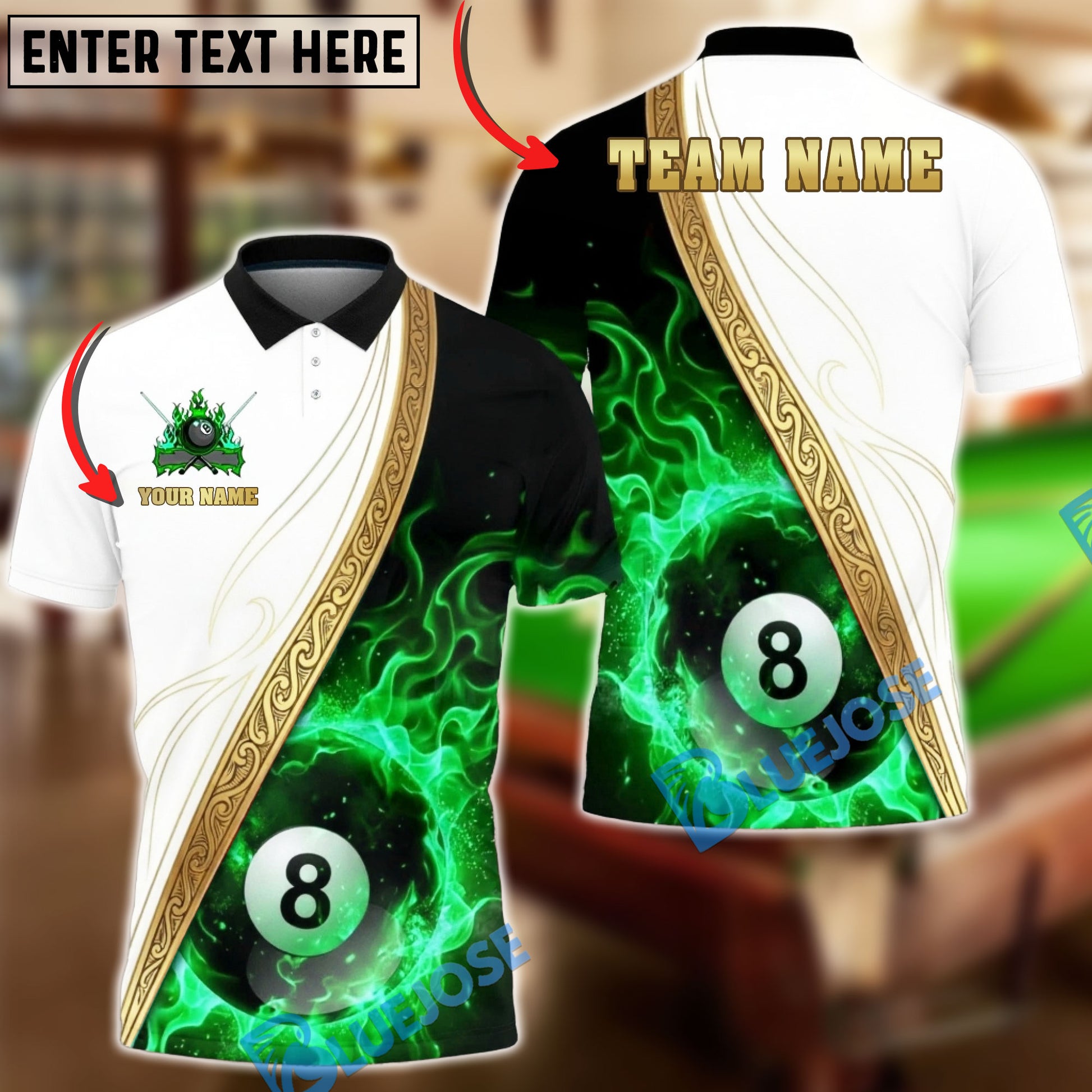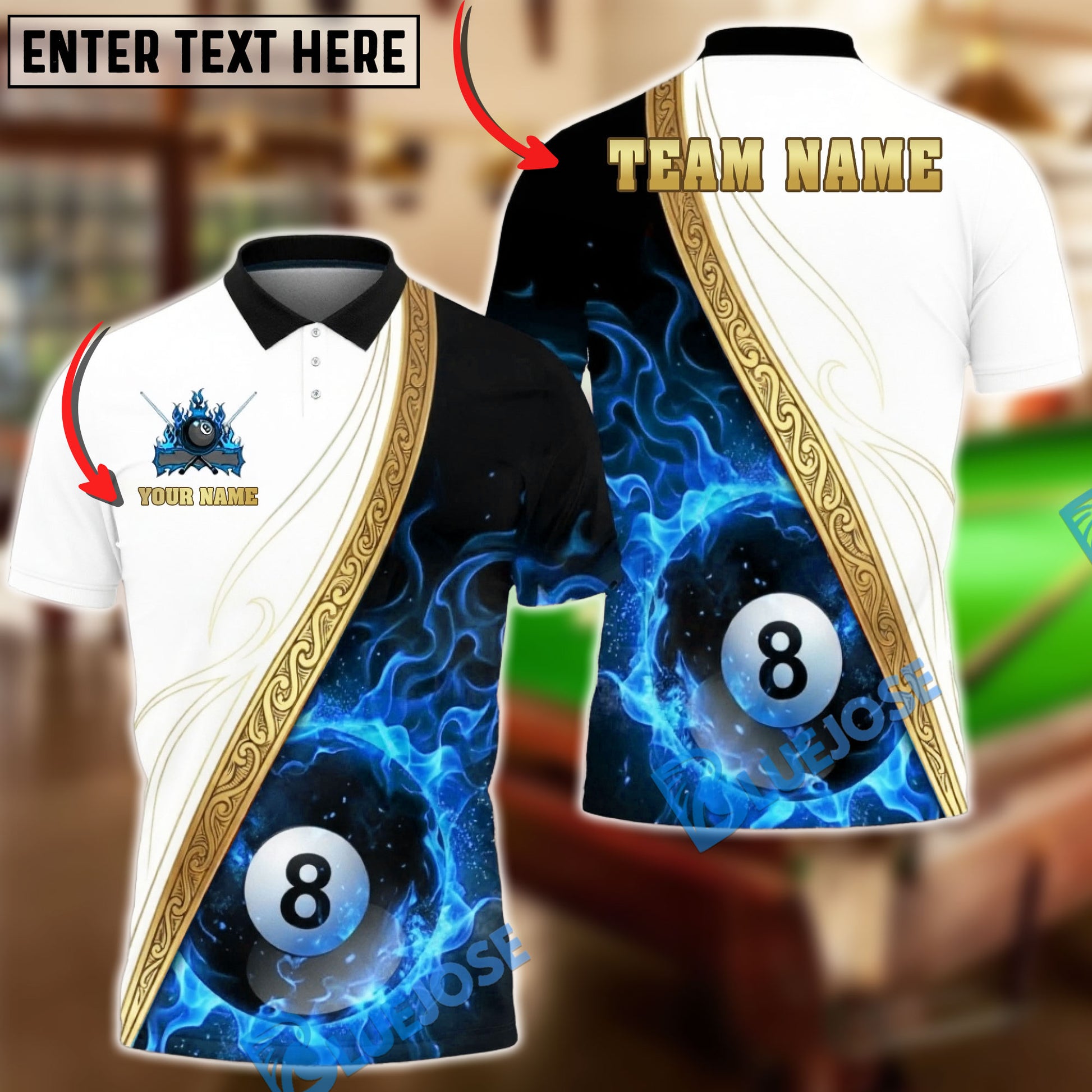 BlueJose Billiards 8 Ball White Black Fire Elegant Personalized Name, Team Name Unisex Shirt (4 Colors)