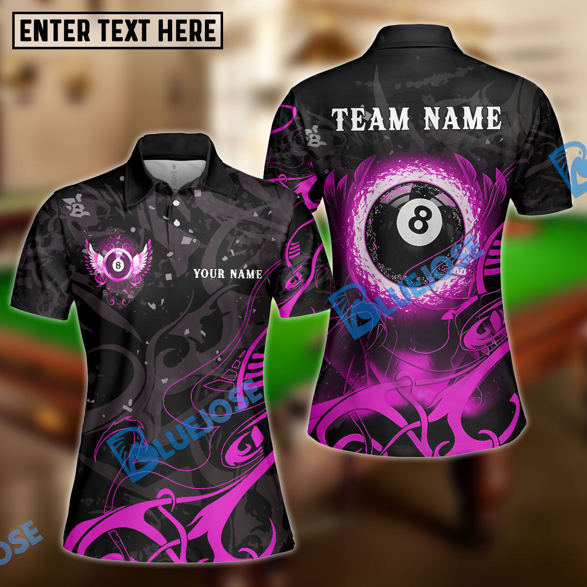 BlueJose Billiards 8 Ball Wing Personalized Name, Team Name Shirt (6 Colors)