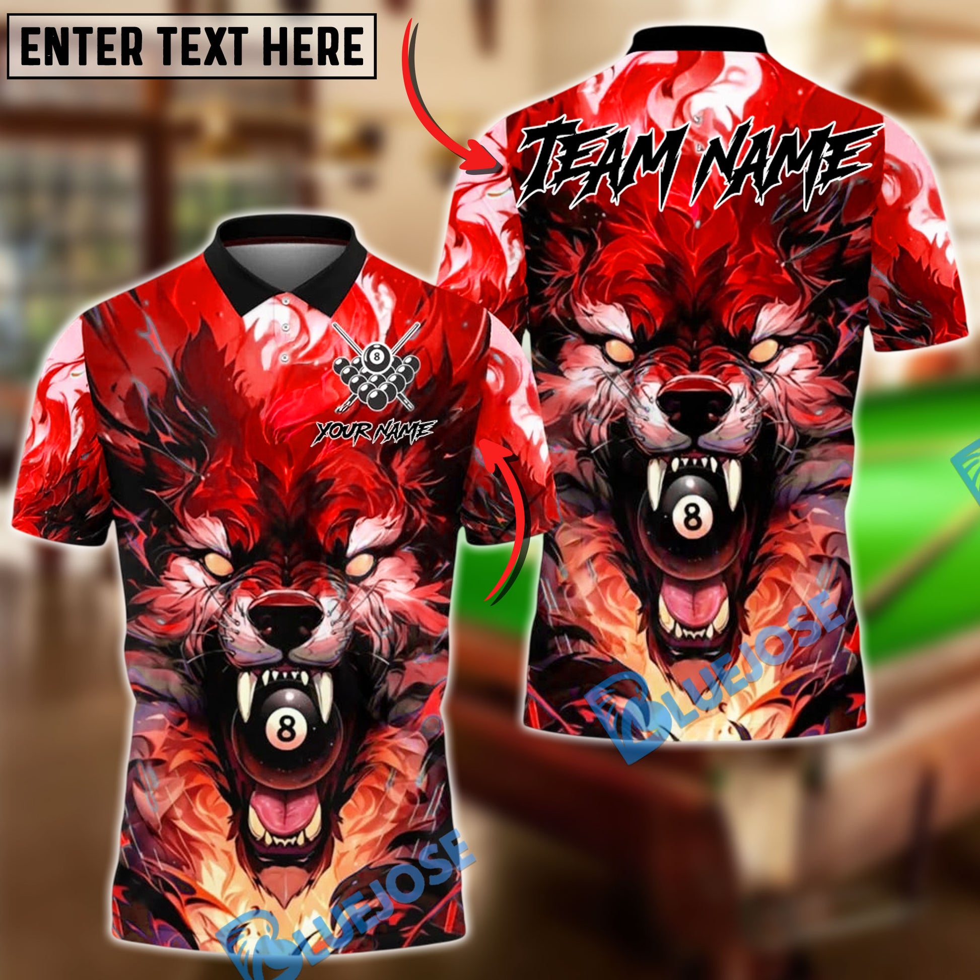 BlueJose Billiards 8 Ball Wolf Double Flame Personalized Name, Team Name Unisex Shirt (4 Colors)