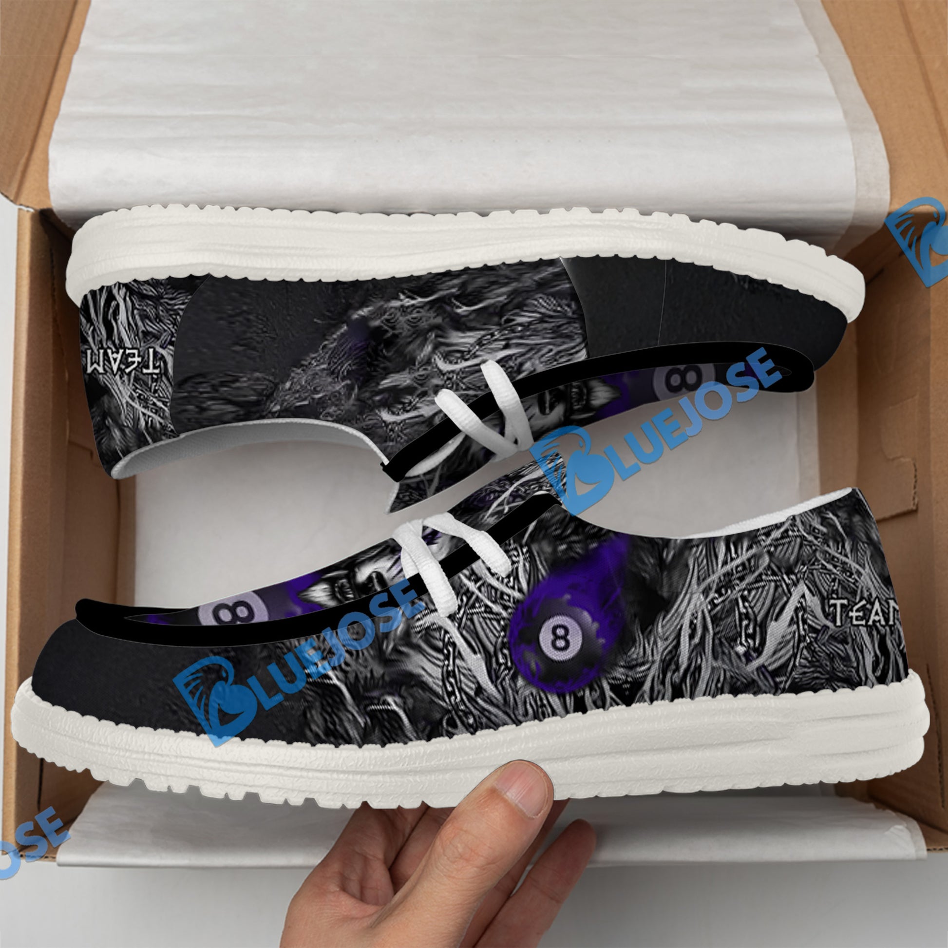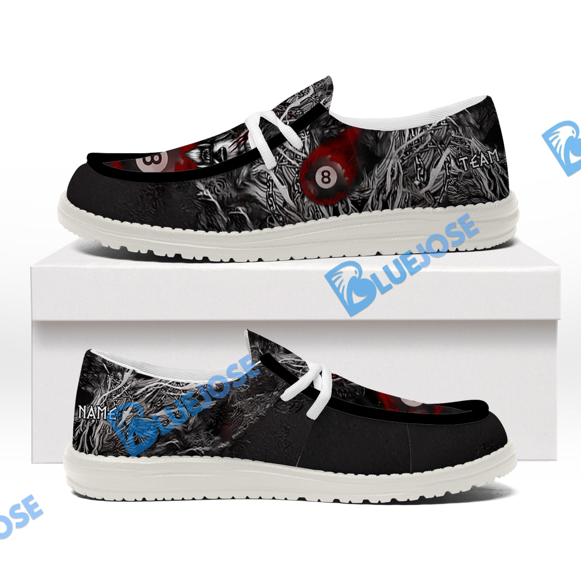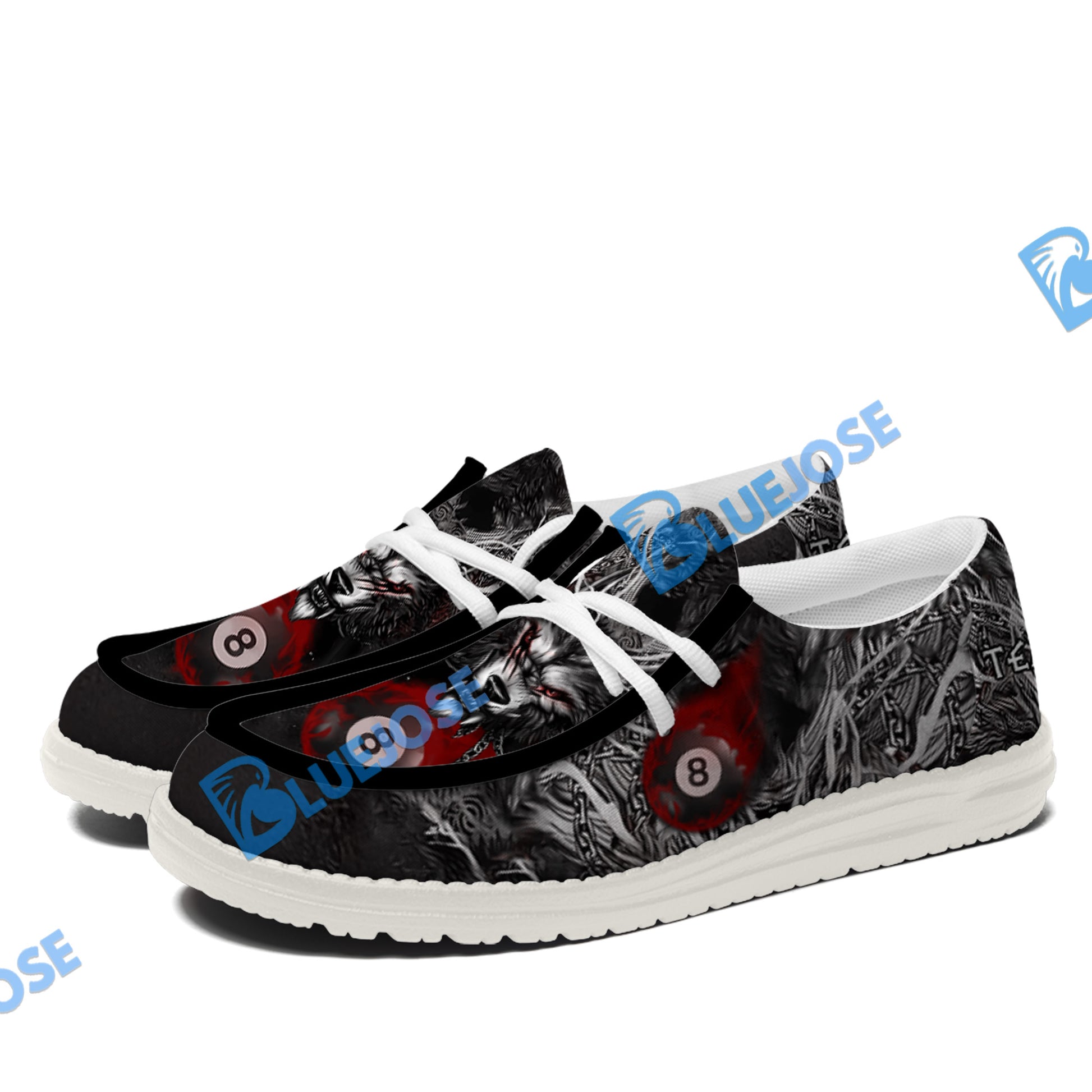 BlueJose Billiards 8 Chain Scar Wolf White Canvas Loafer Shoes (4 Colors)