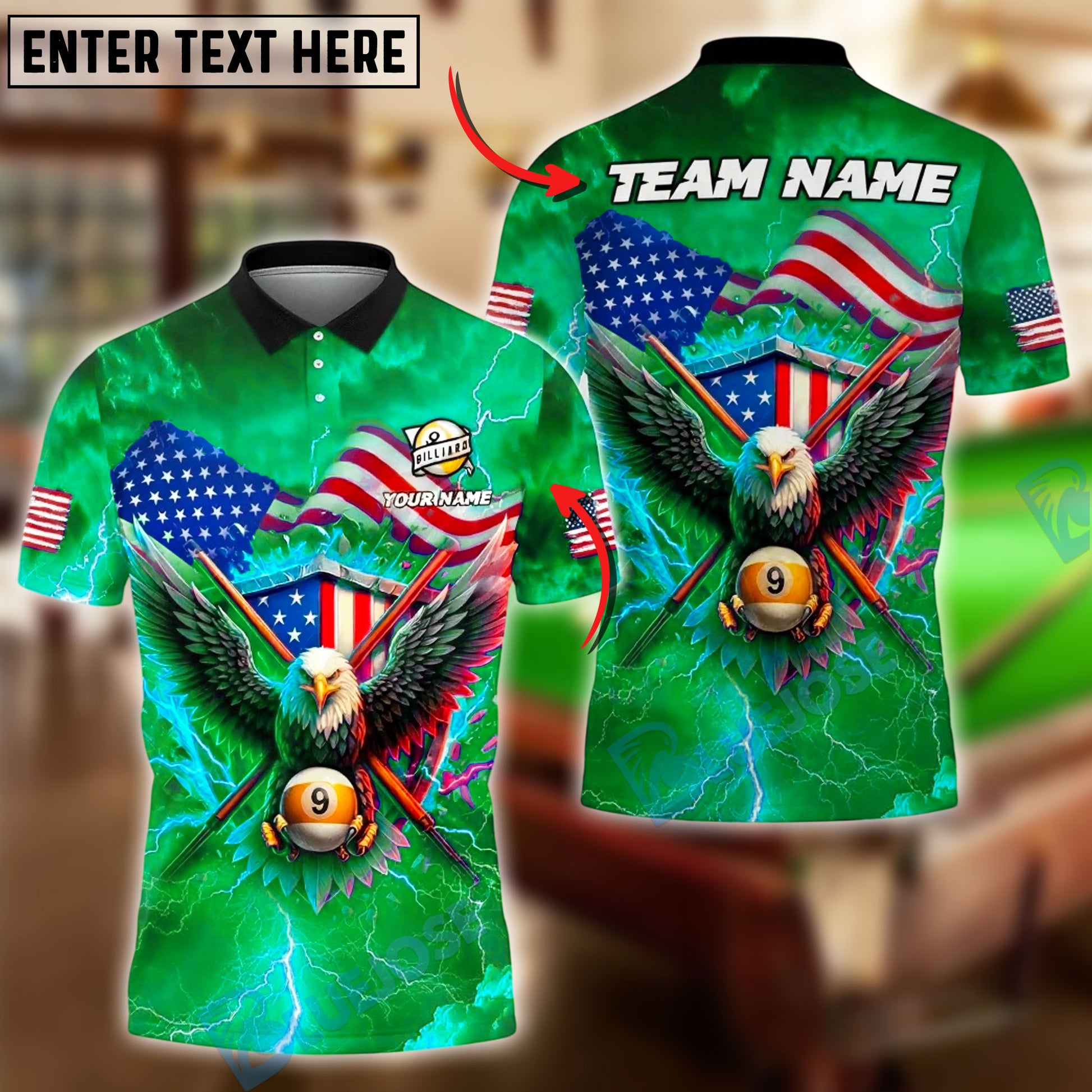 BlueJose Billiards 9 Ball Eagle USA Flag Lightning Personalized Name, Team Name Unisex Shirt (4 Colors)