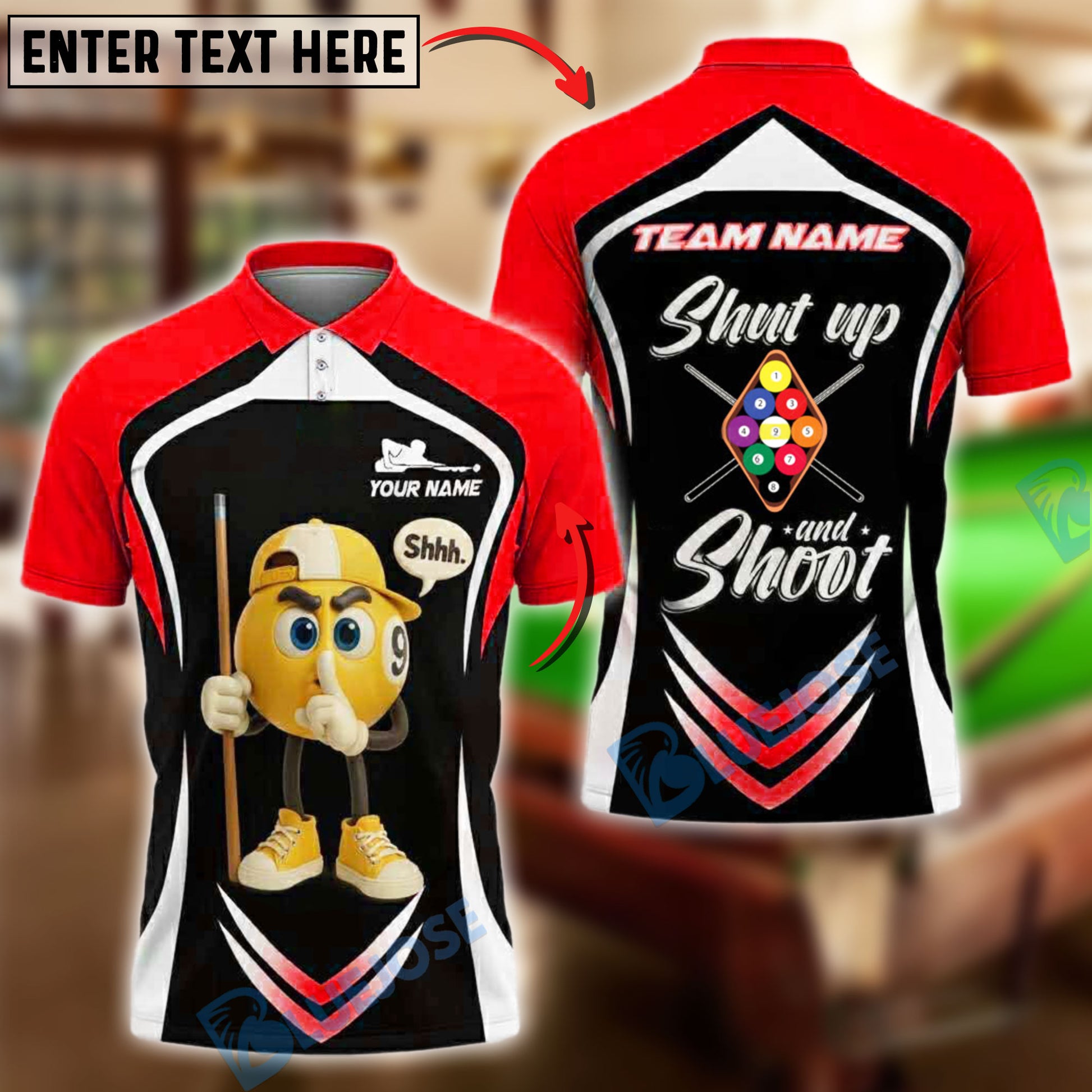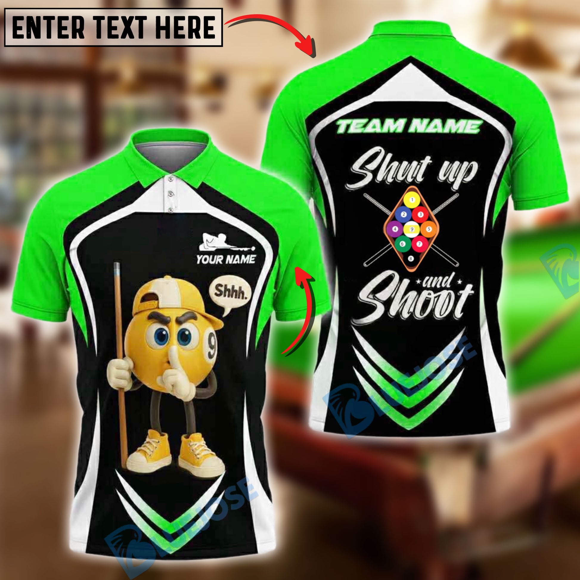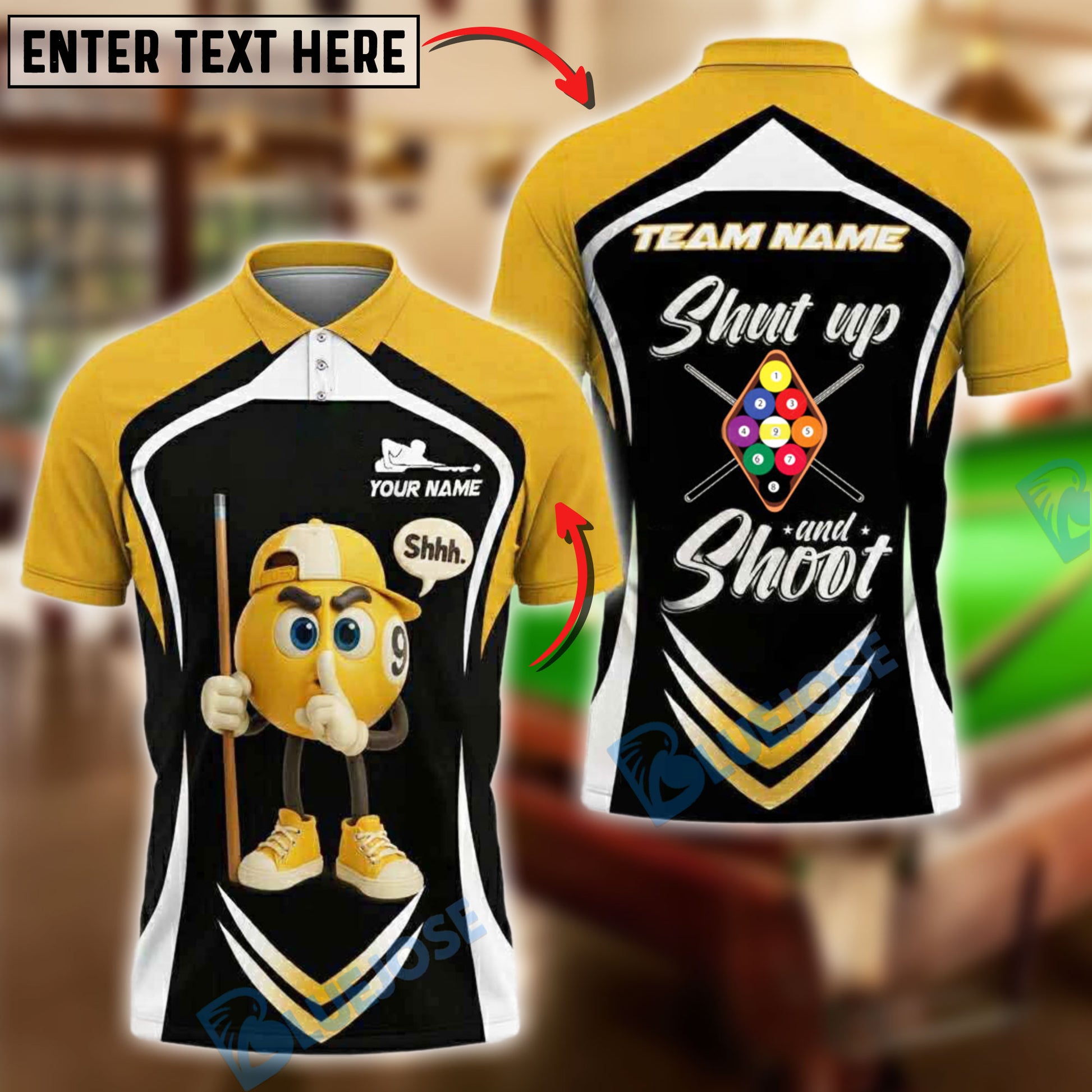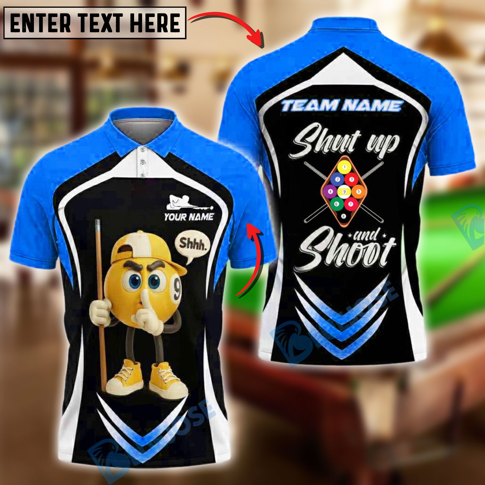 BlueJose Billiards 9-Ball Pool Shut Up and Shoot Personalized Name, Team Name Unisex Shirt (4 Colors)