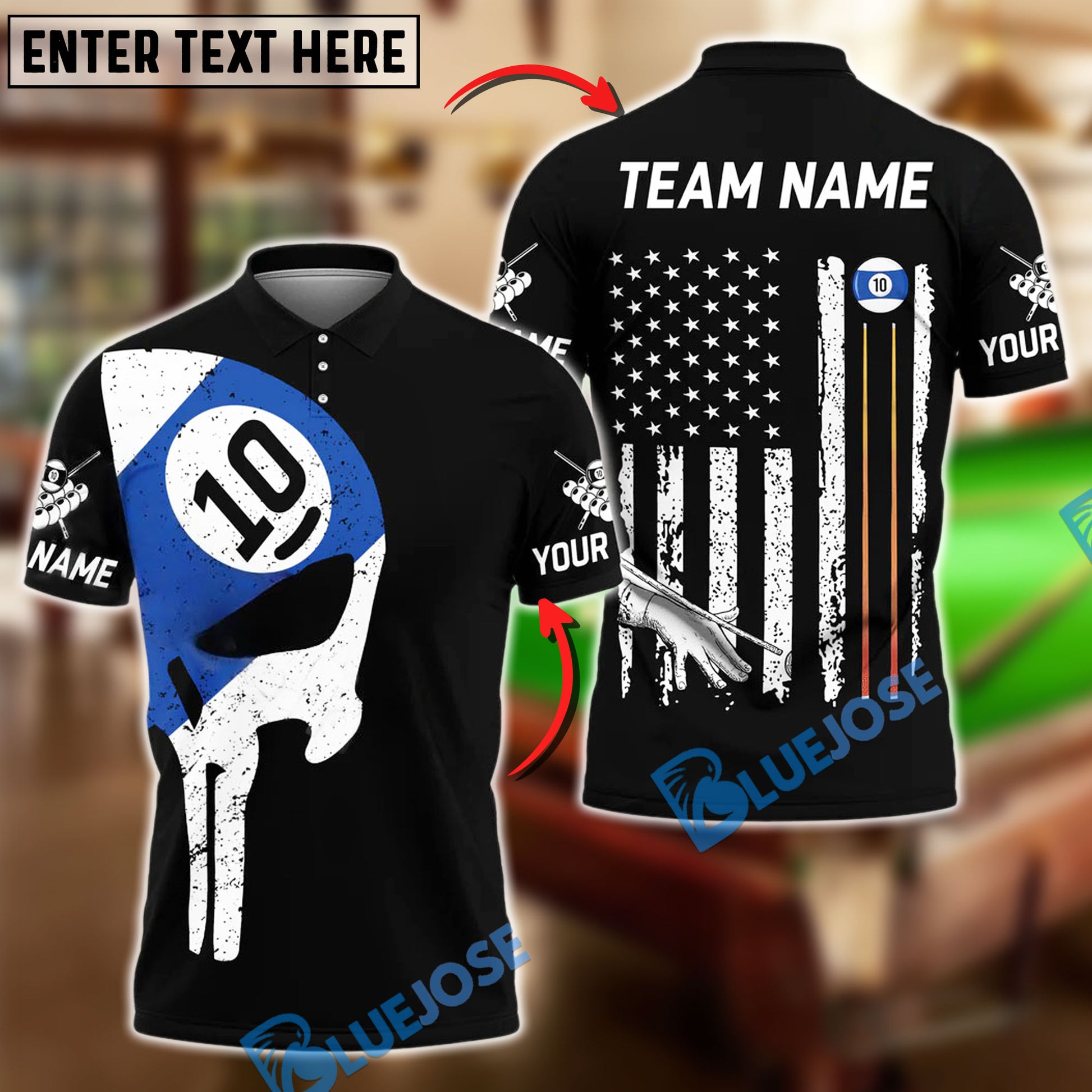 BlueJose Billiards Ball 10 Skull American Flag Customized Name, Team Name 3D Shirt