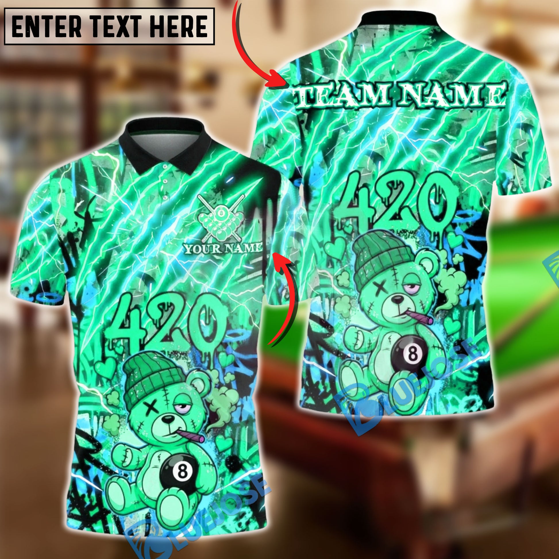 BlueJose Billiards Ball 8 420 Bear Electric Design Customized Name, Team Name 3D Shirt (4 Colors)