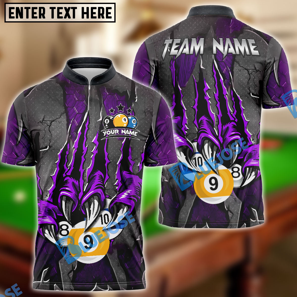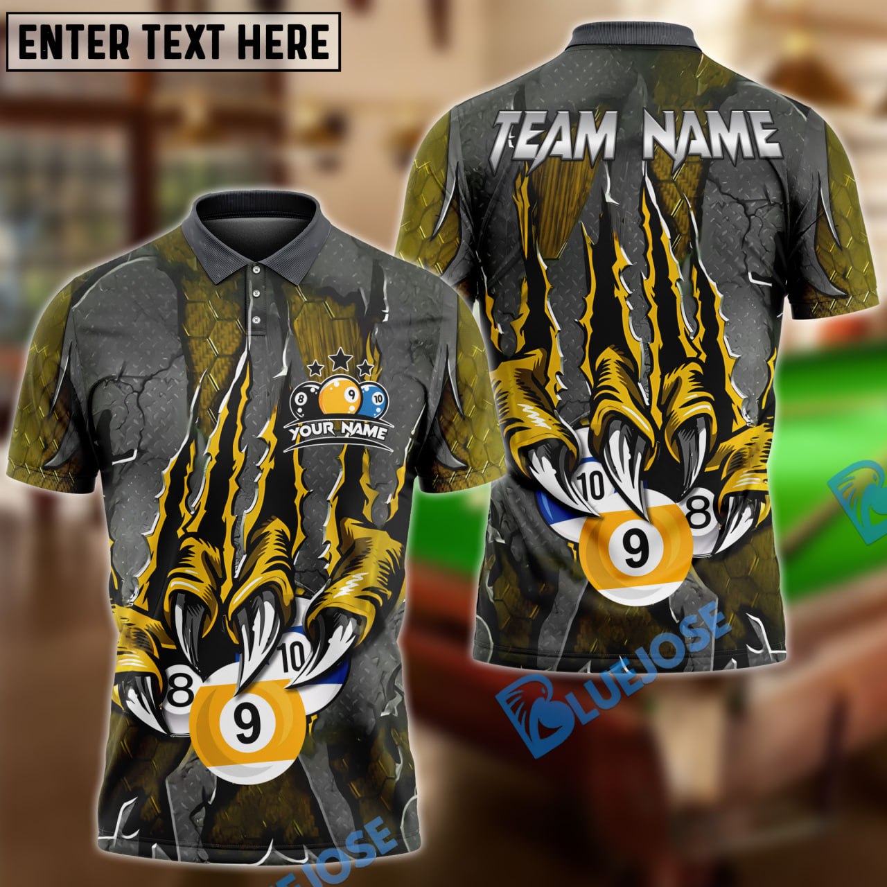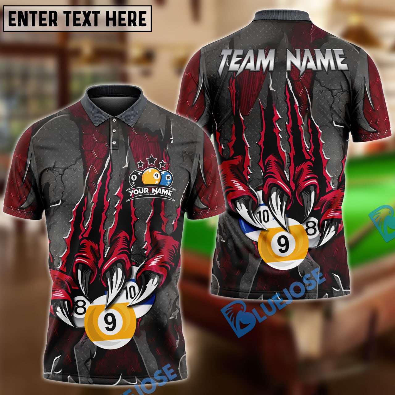 BlueJose Billiards Ball 8,9 And 10 Monster Claw Personalized Name Shirt (4 Colors)