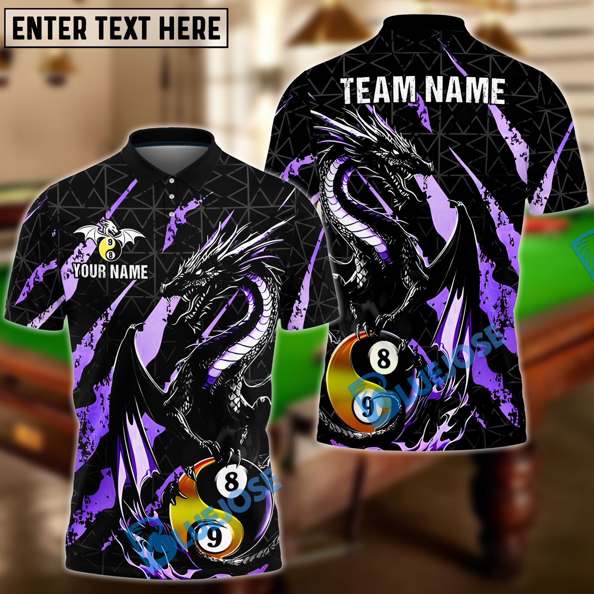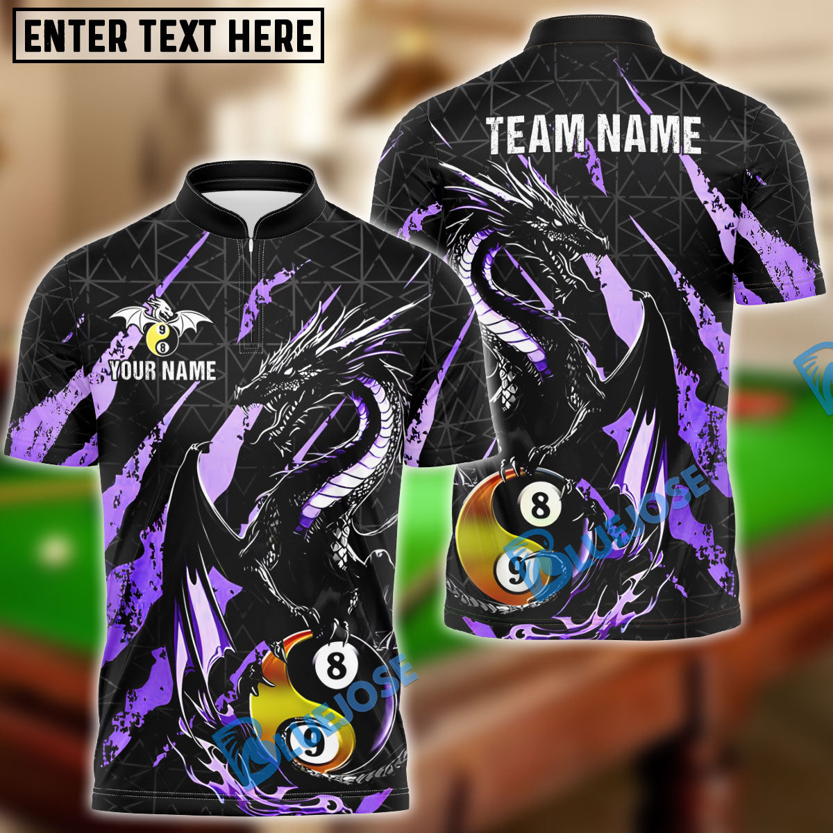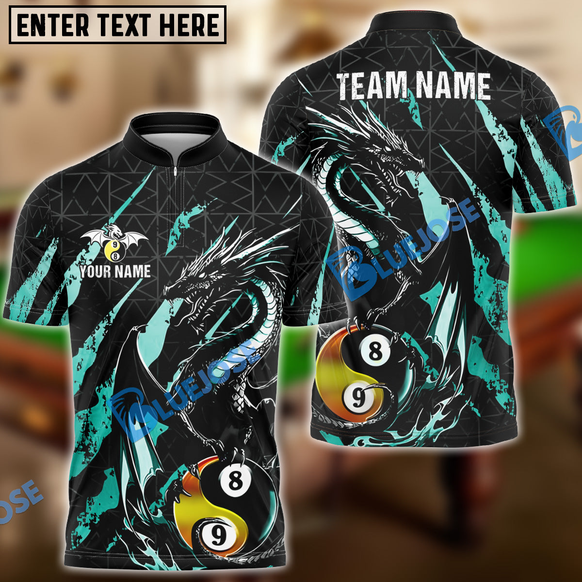 BlueJose Billiards Ball 8&9 Yinyang Golden Fury Dragon Personalized Name Shirt (4 Colors)