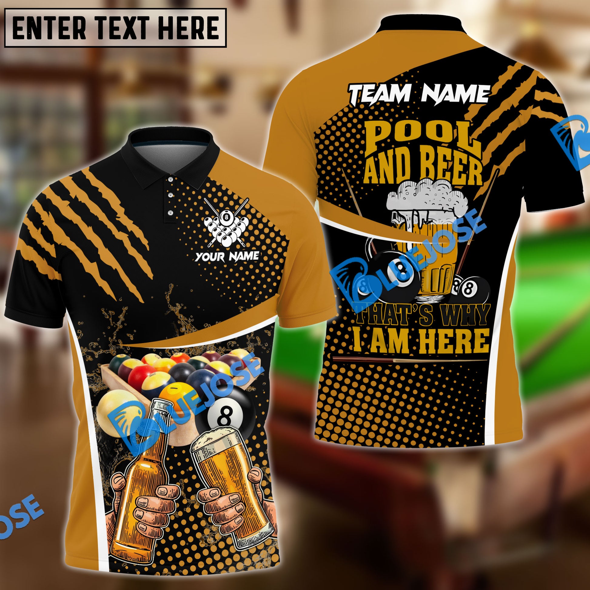 BlueJose Billiards Ball 8 And Beer Im Here Personalized Name & Team Name Shirt (4 Colors)