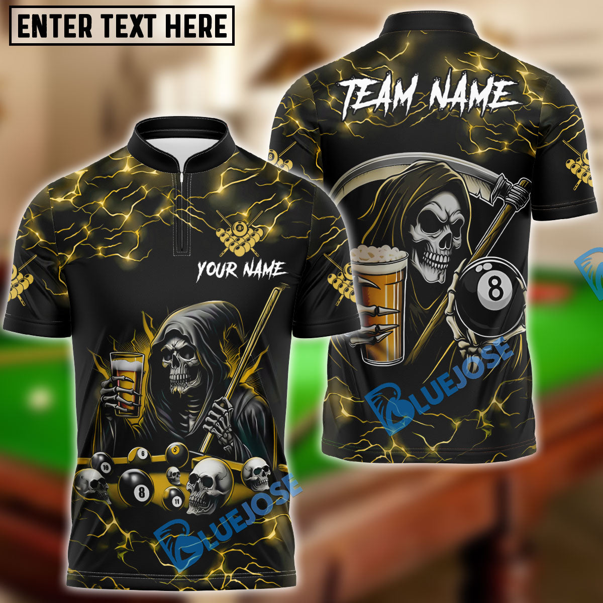 BlueJose Billiards Ball 8 Death Skeleton & Beer Personalized Shirt (6 Colors)