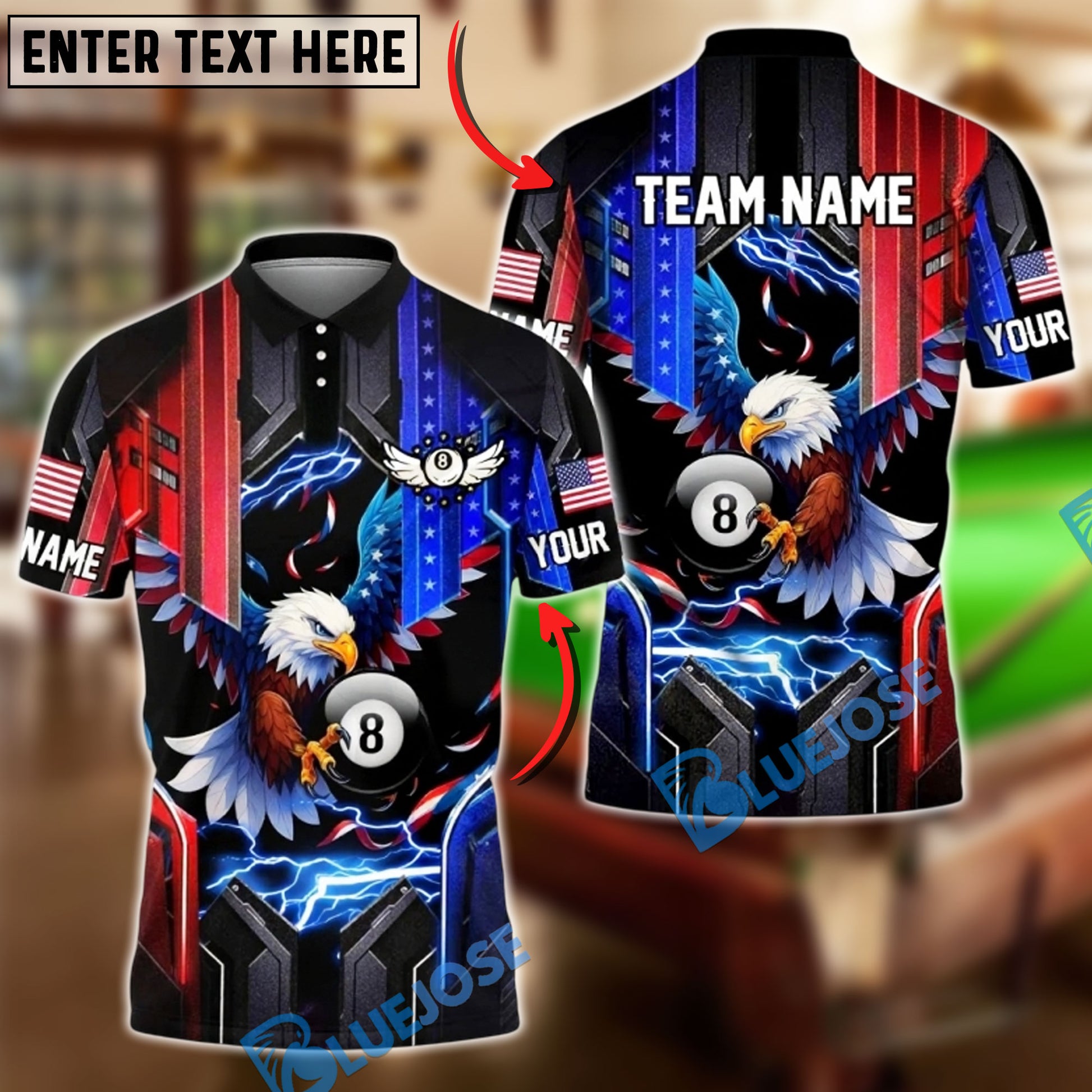 BlueJose Billiards Ball 8 Eagle American Flag Lightning Customized Name, Team Name 3D Shirt