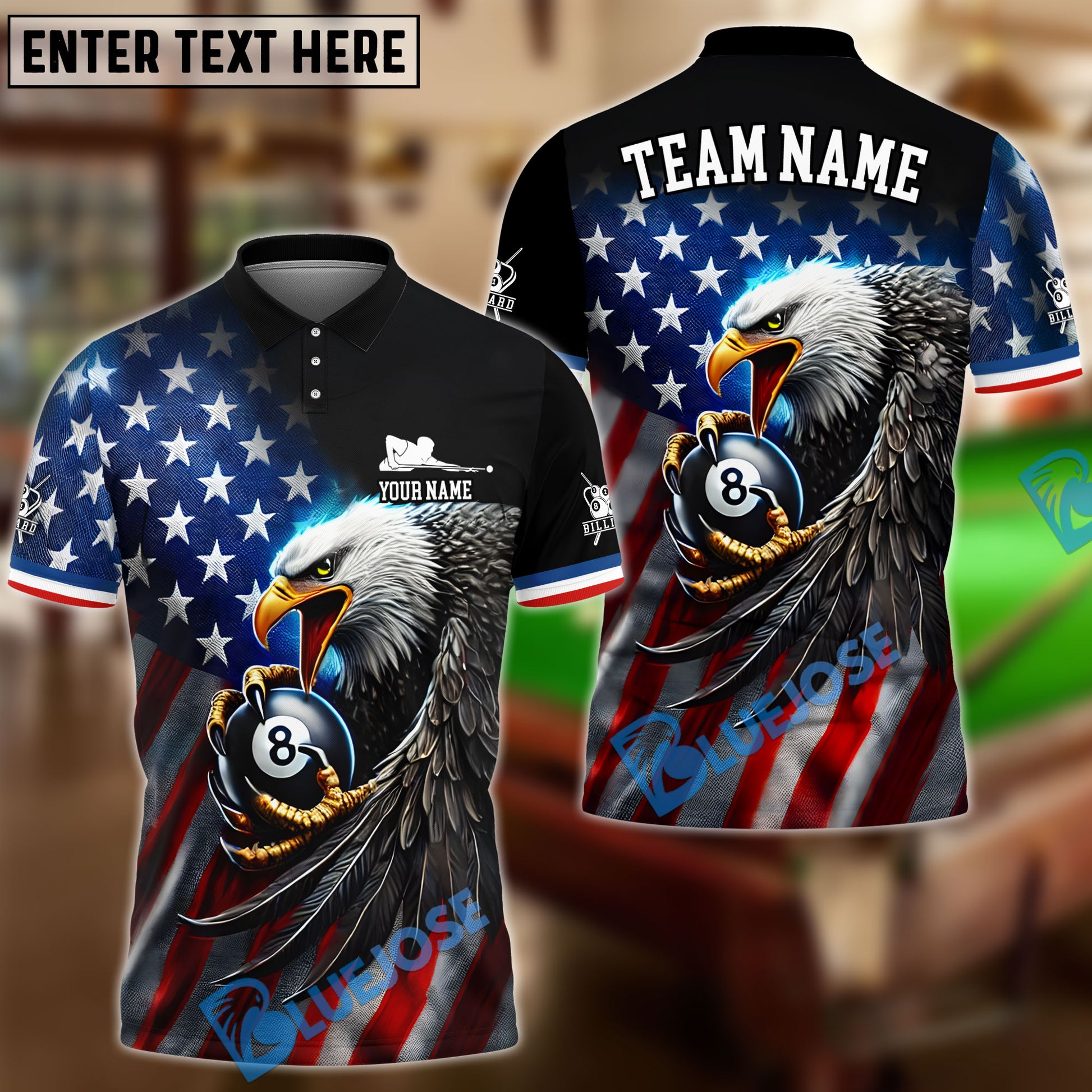 BlueJose Billiards Ball 8 Eagle Flag Of US Pattern Personalized Name, Team Name Unisex Shirt