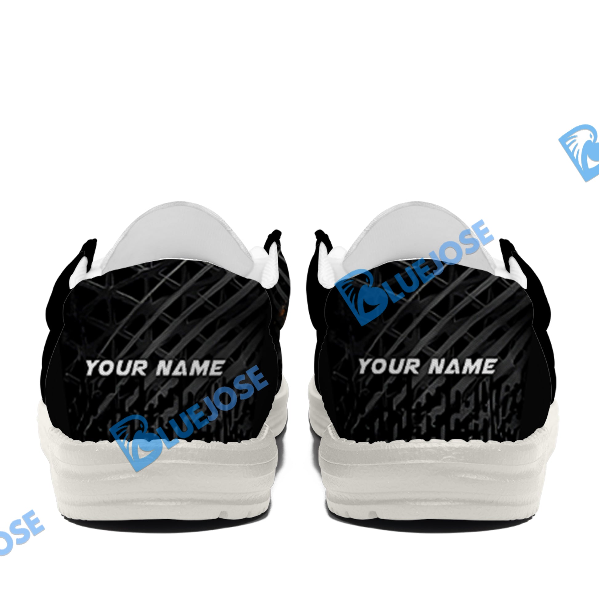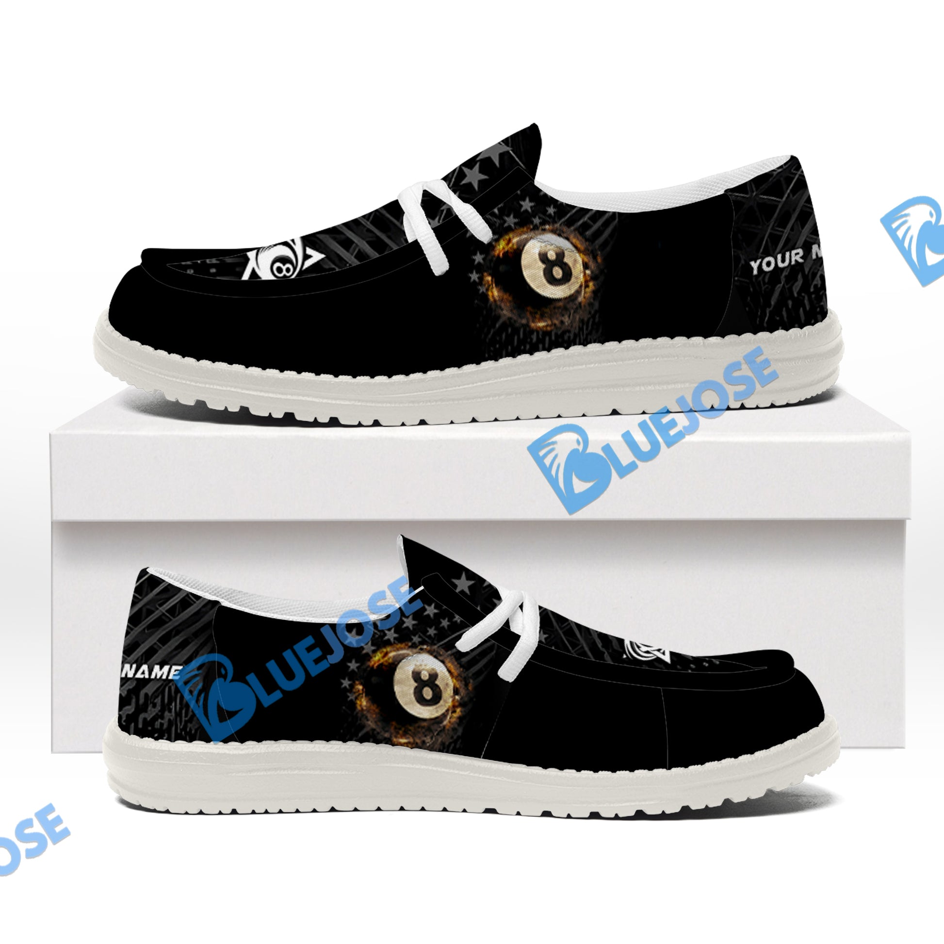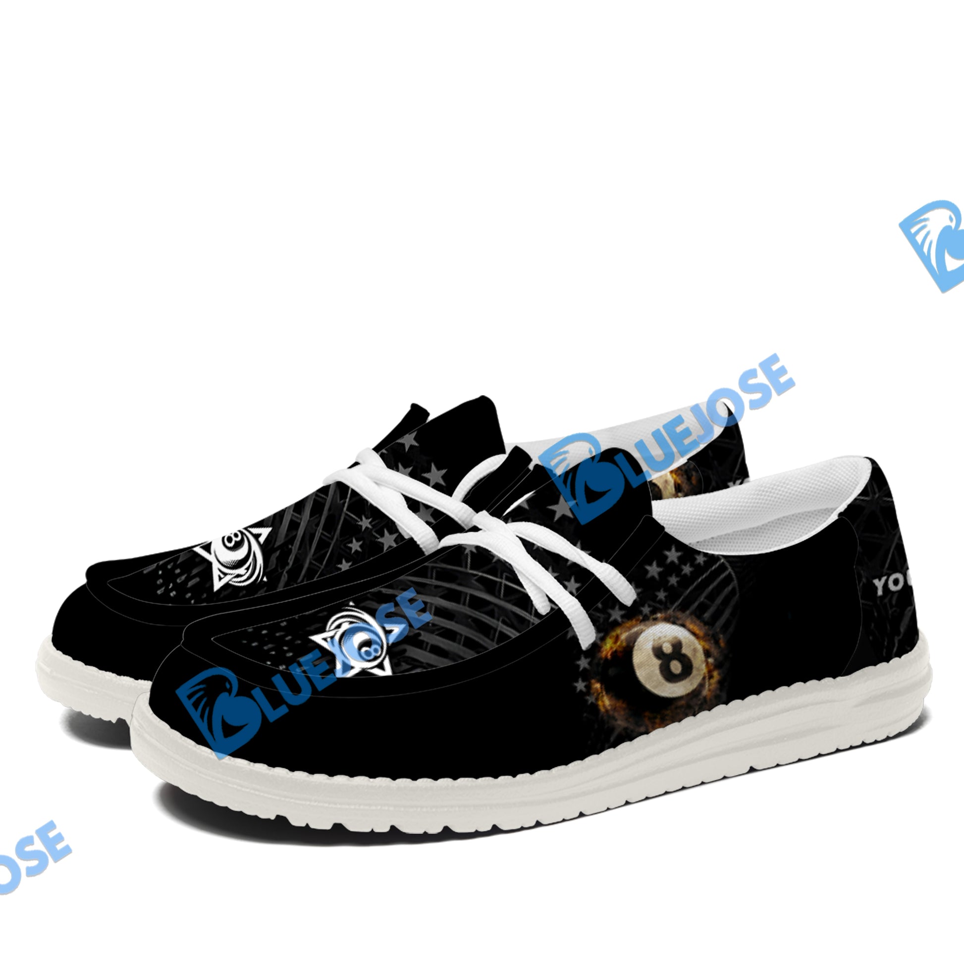 BlueJose Billiards Ball 8 Fire Black US Flag White Canvas Loafer Shoes