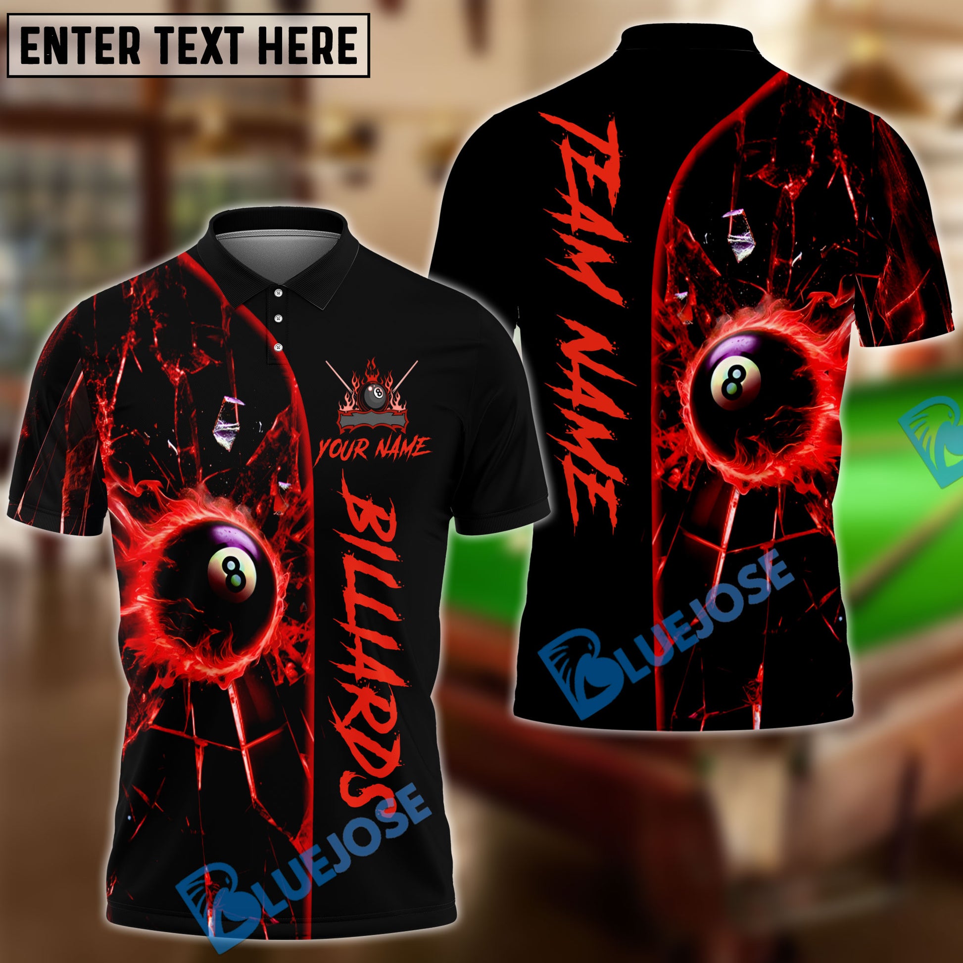 BlueJose Billiards Ball 8 Fire Break Glass Personalized Name Shirt (4 Colors)