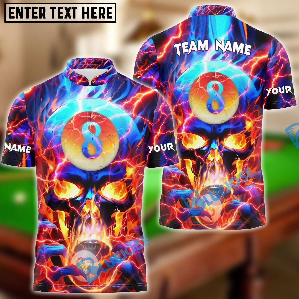 BlueJose Billiards Ball 8 Flame Hollow Skull Personalized Name, Team Name Unisex Shirt (4 Colors)