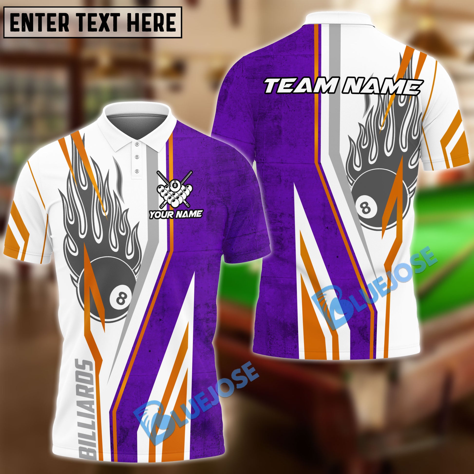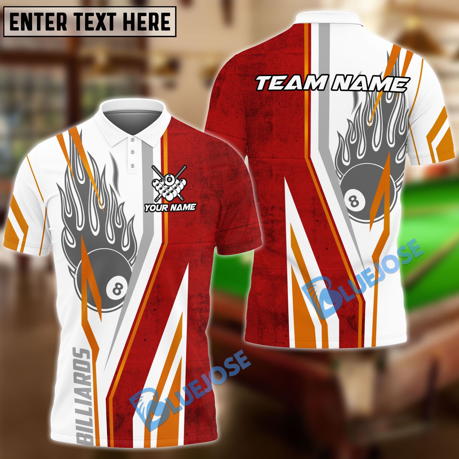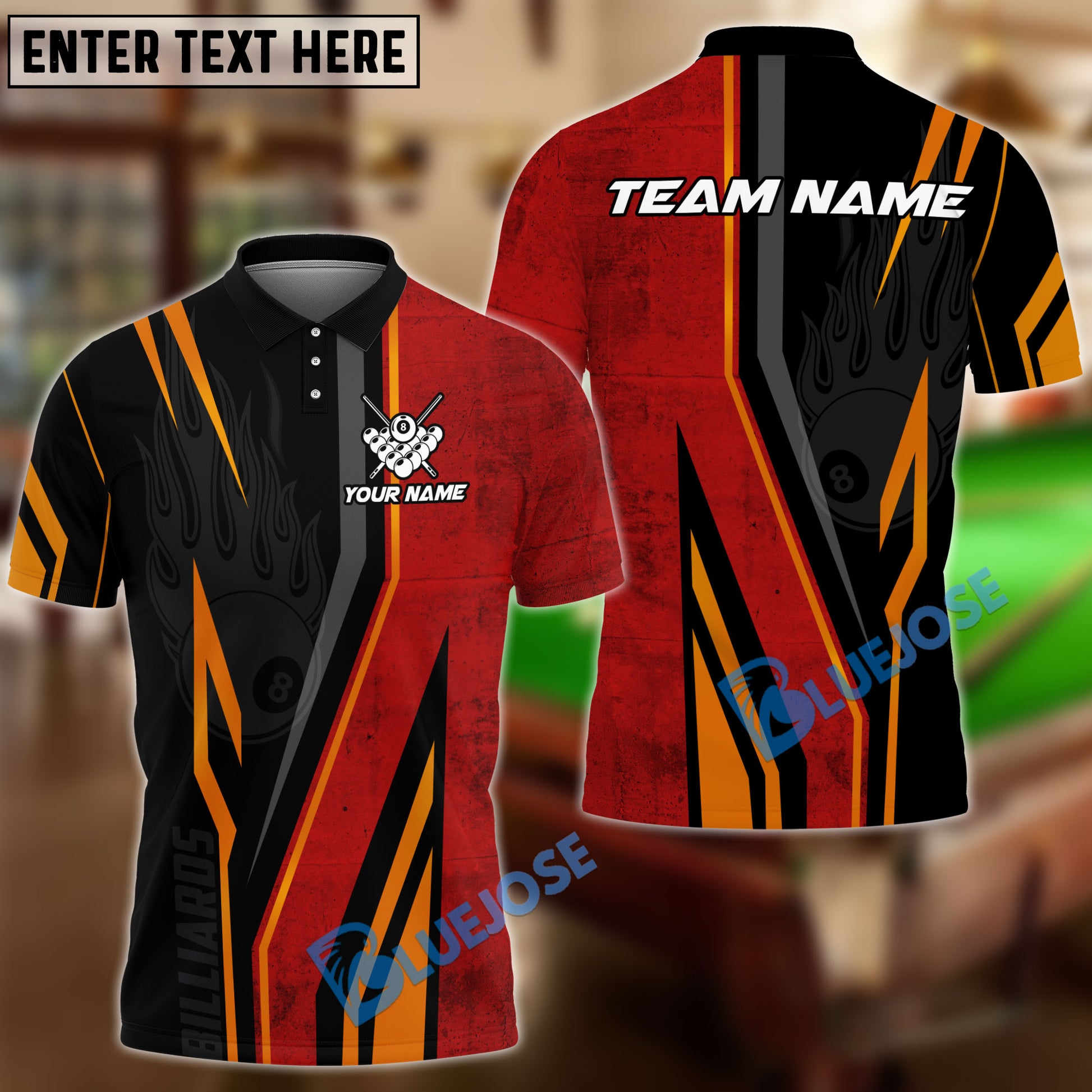 BlueJose Billiards Ball 8 Flaming Victory Personalized Name & Team Name Shirt (6 Colors)